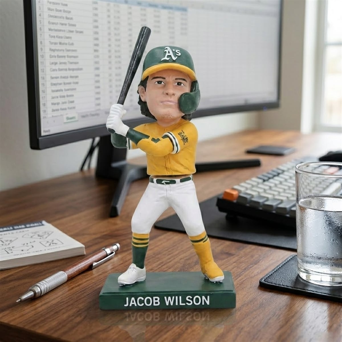 Beyond its visual appeal, this collectible carries profound significance for the franchise and its supporters. The year 2026 marks a pivotal era for the Athletics, with Jacob Wilson firmly established as the face of the team’s new generation. Having followed in the footsteps of his major-league father, Jack Wilson, Jacob has forged his own legacy through unparalleled contact-hitting and steady leadership on the field. This figure symbolizes hope, athletic excellence, and the bright future of the organization. Displaying this item means celebrating a narrative of hard work, family baseball heritage, and the thrill of watching a top prospect seamlessly transition into a bonafide superstar on the national stage.