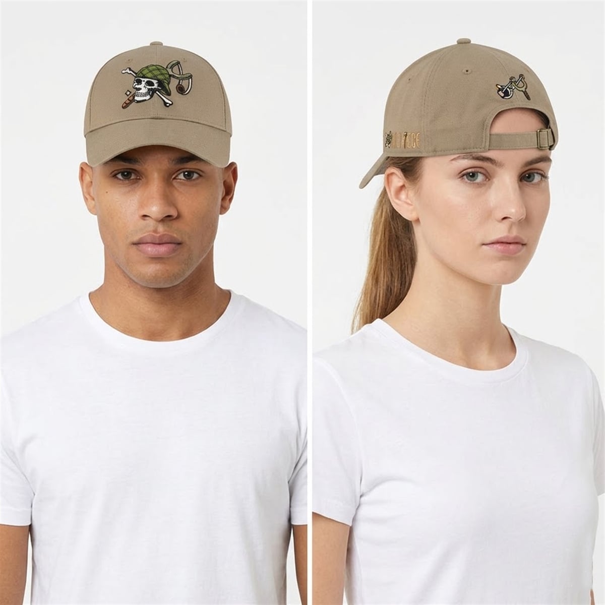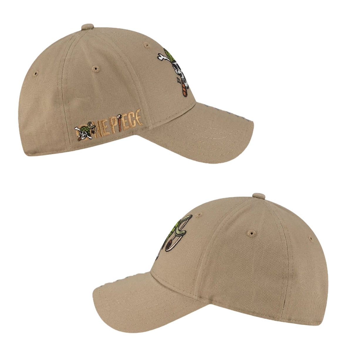 The hat brings a refined, highly stylized perspective to anime-inspired fashion. Boasting a versatile khaki base, this cap is visually striking thanks to its deeply symbolic and meticulously detailed visual elements. On the front crown sits Usopp’s personalized Jolly Roger—a skull complete with his signature green headgear, distinctive nose, and crossbones cleverly replaced by his iconic slingshot weapon. Turning the cap reveals another layer of design: the back features a standalone depiction of his trusted slingshot, while the side panel proudly displays the “ONE PIECE” logo integrated with a miniature version of the sniper’s emblem. This thoughtful 360-degree design creates a completely immersive experience for the wearer.