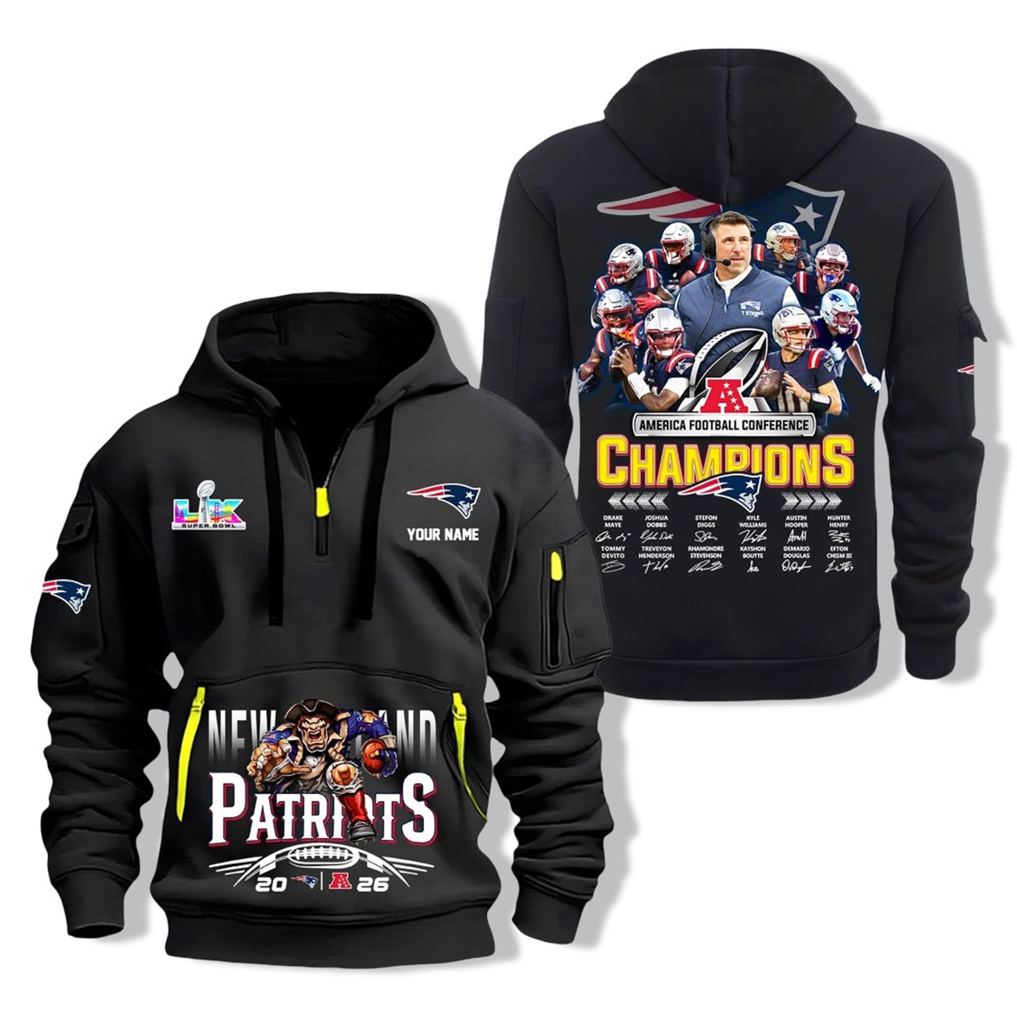 2026 New England Patriots AFC Champions Super Bowl LX Quarter Zip Hoodie – Where Fantasy Meets the Smothered & Covered