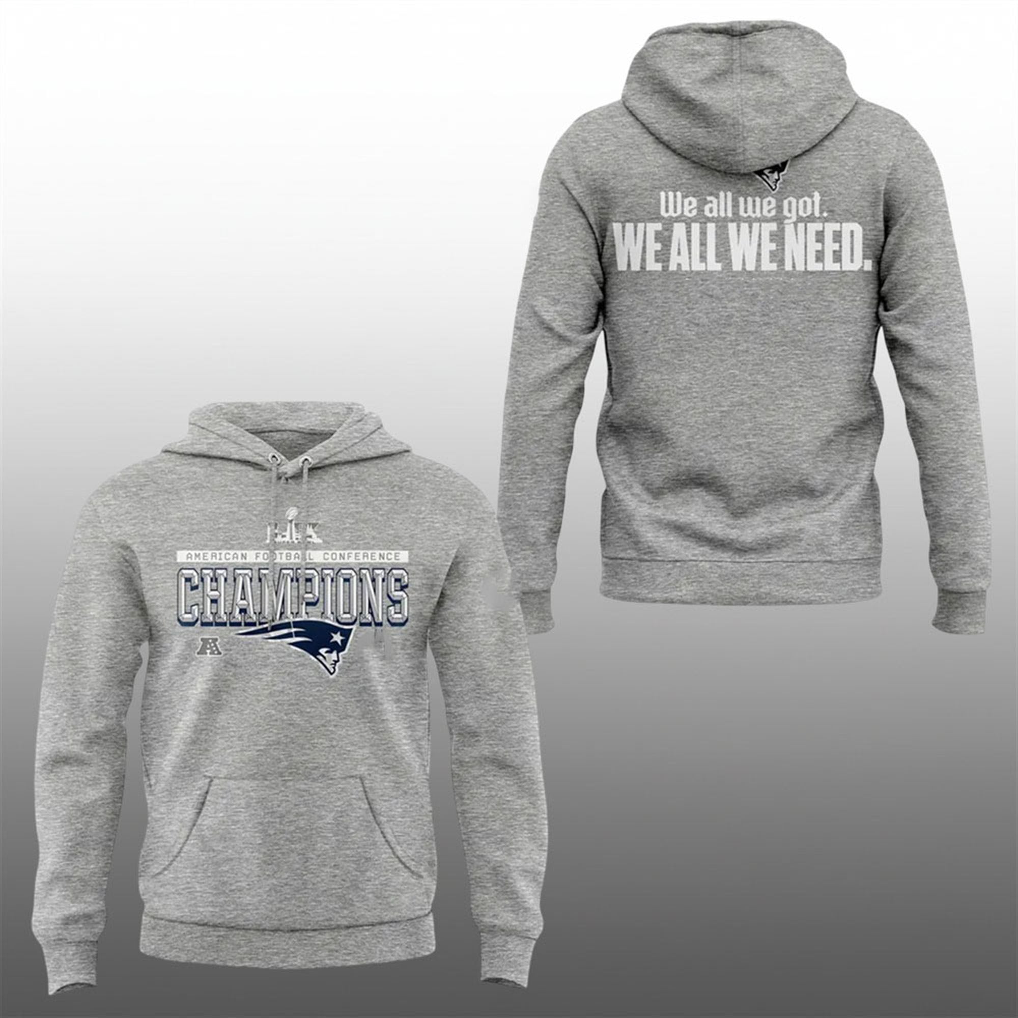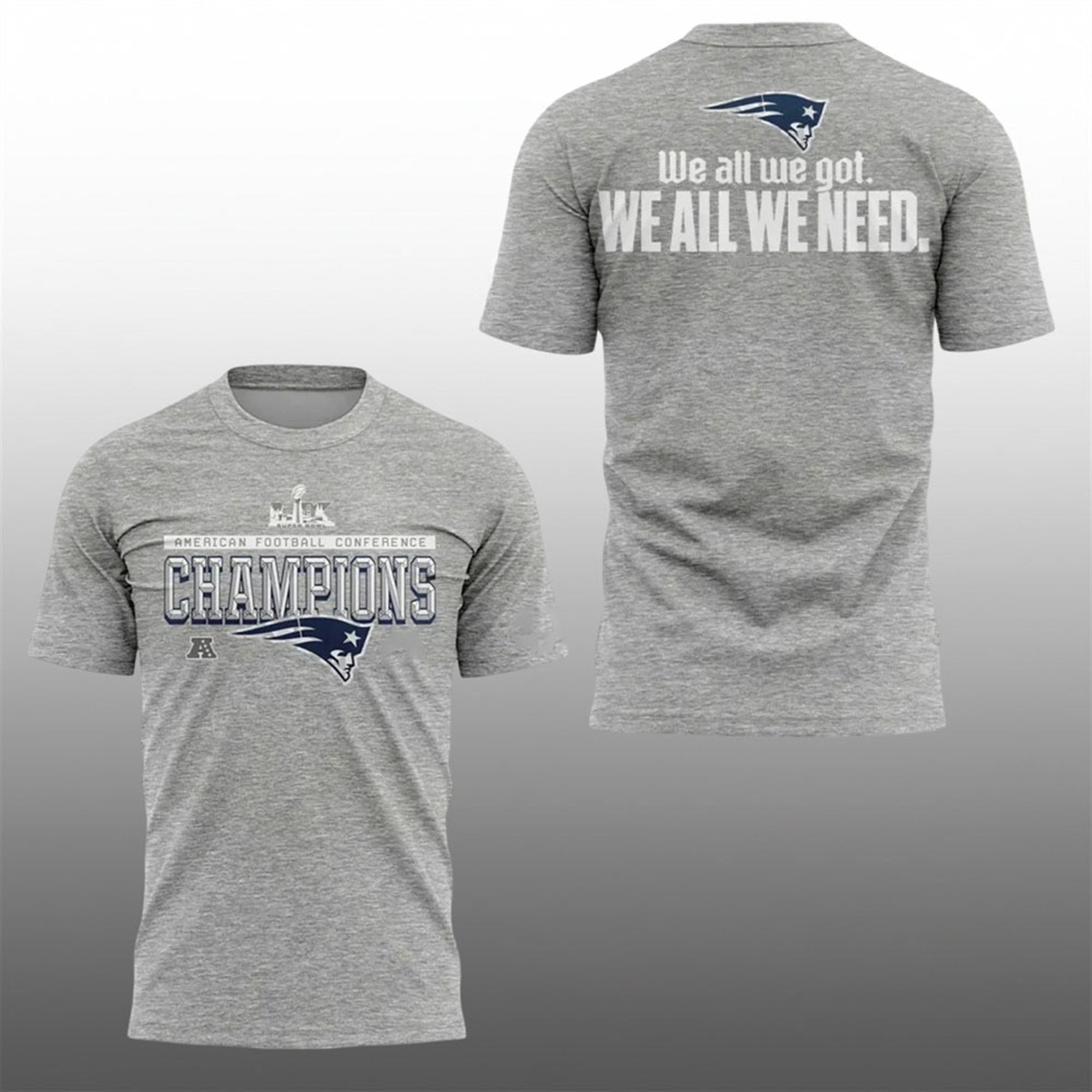 Get ready for the Super Bowl with the must-have item of the 2026 post-season: the 2026 Patriots AFC Champions We All We Got We All We Need Shirt. Perfect for die-hard fans and collectors alike, this shirt celebrates the grit and unity of the 2026 roster. Secure your piece of Patriots history today and wear the slogan that powered the team through the playoffs.