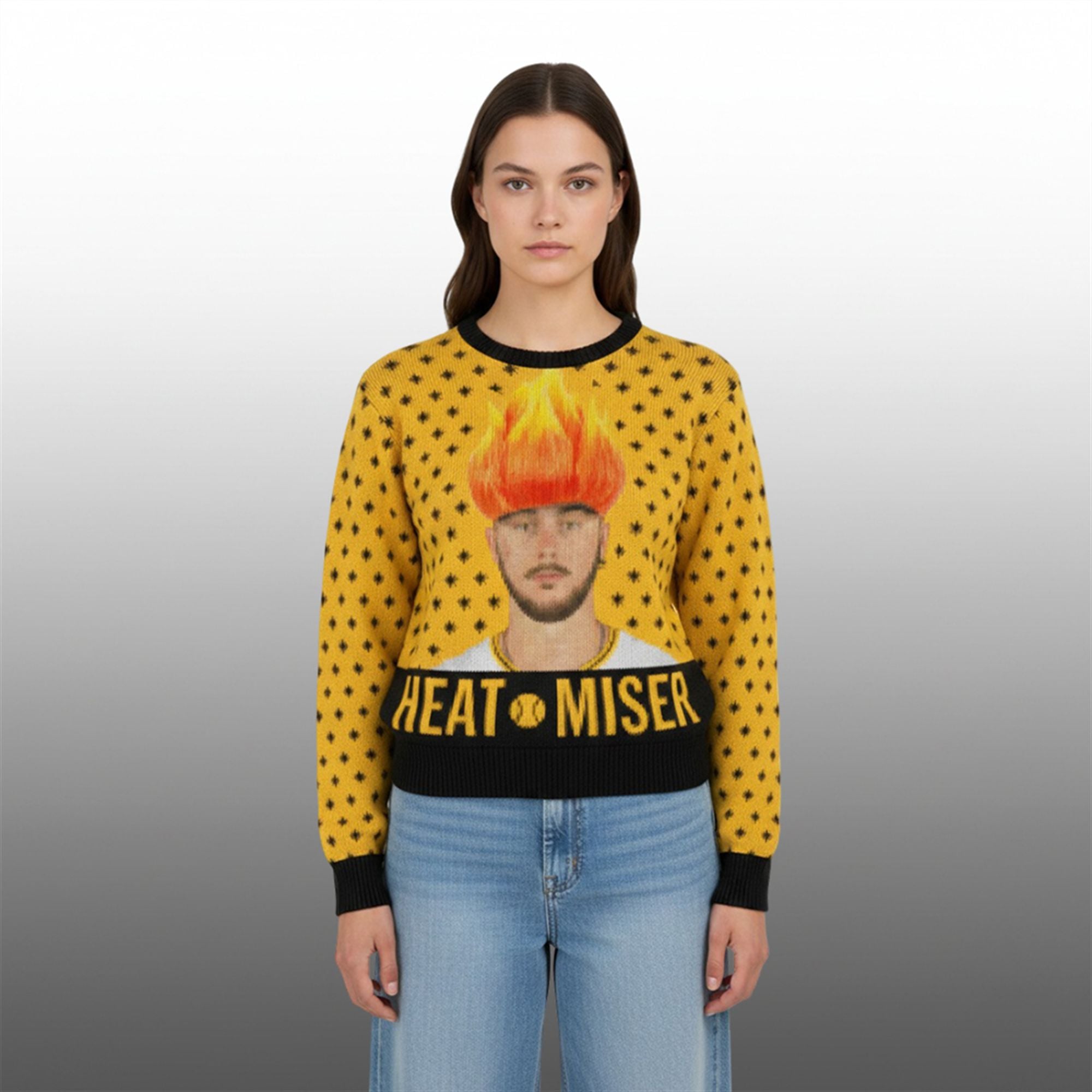 Forget generic snowflakes and reindeer—this season is all about bringing the heat. Introducing the viral sensation of 2026: the Paul Skenes “Heat Miser” Sweater. This clever design plays on Skenes’ reputation for throwing absolute gas, merging his stoic game-face with the flaming hair of the classic Year Without a Santa Claus character.