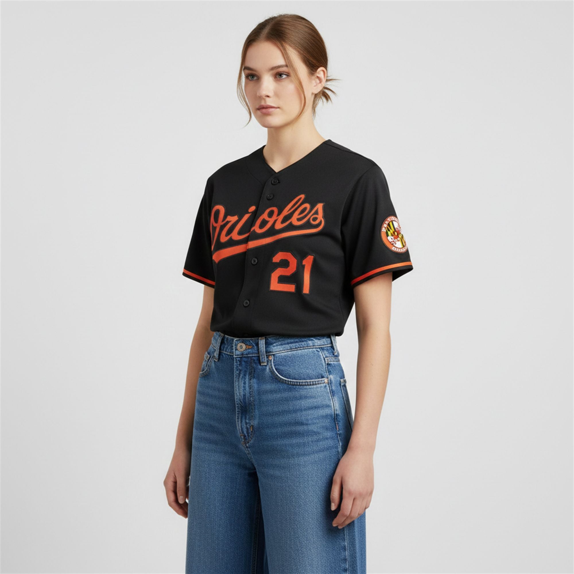 Every detail of this jersey pays homage to Baltimore baseball tradition while celebrating its bright future. The front features the classic “Orioles” script in spirited orange with white and black outlining, meticulously stitched for a high-quality finish. The back proudly displays “ALONSO” and the number “21” in pro-quality tackle twill. A distinct feature of this jersey is the authentic Maryland flag patch on the left sleeve, a beloved detail that connects the team directly to its home state heritage.