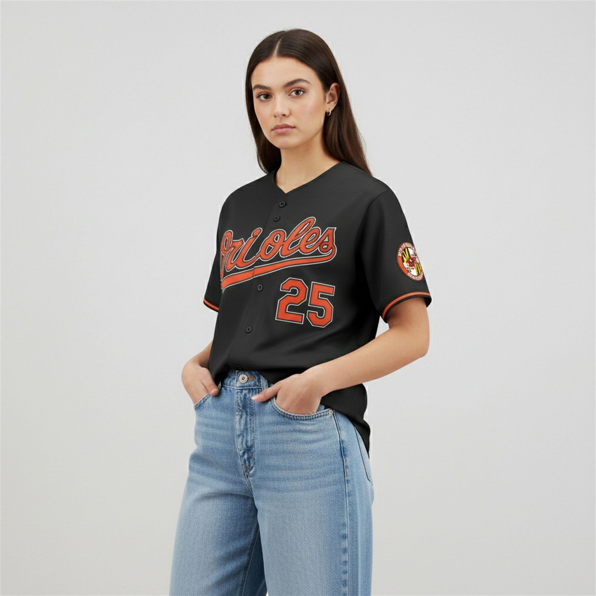 Every detail of this jersey pays homage to Baltimore baseball tradition while celebrating its bright future. The front features the classic “Orioles” script in spirited orange with white and black outlining, meticulously stitched for a high-quality finish. The back proudly displays “ALONSO” and the number “25” in pro-quality tackle twill. A distinct feature of this jersey is the authentic Maryland flag patch on the left sleeve, a beloved detail that connects the team directly to its home state heritage.
