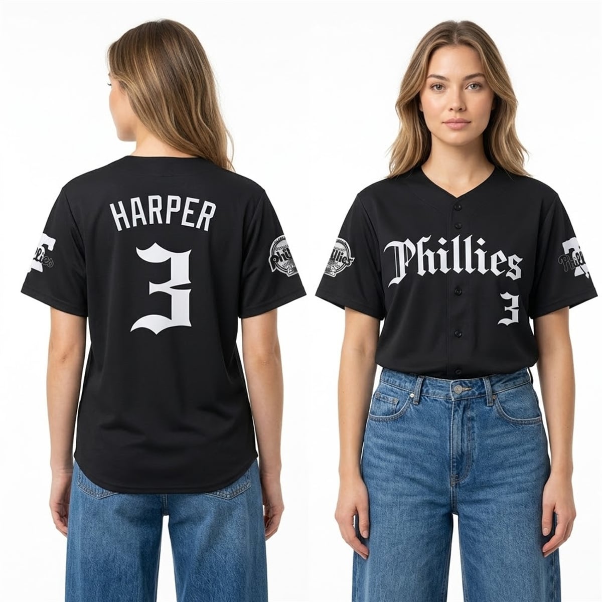 The jersey’s striking departure from traditional team colors instantly ignited viral discussions across sports social media platforms. Influencers and hardcore fans gravitated toward the aggressive gothic typography and the gritty “Bells, Bricks, Black” mantra, which perfectly encapsulates Philadelphia’s famous underdog mentality. The prominent association with superstar Bryce Harper further propelled its visibility, transforming the item from standard merchandise into a highly sought-after cultural statement piece. By successfully merging deep historical symbolism with a modern, edgy streetwear aesthetic, the design effortlessly bridged the gap between sports fandom and mainstream fashion.