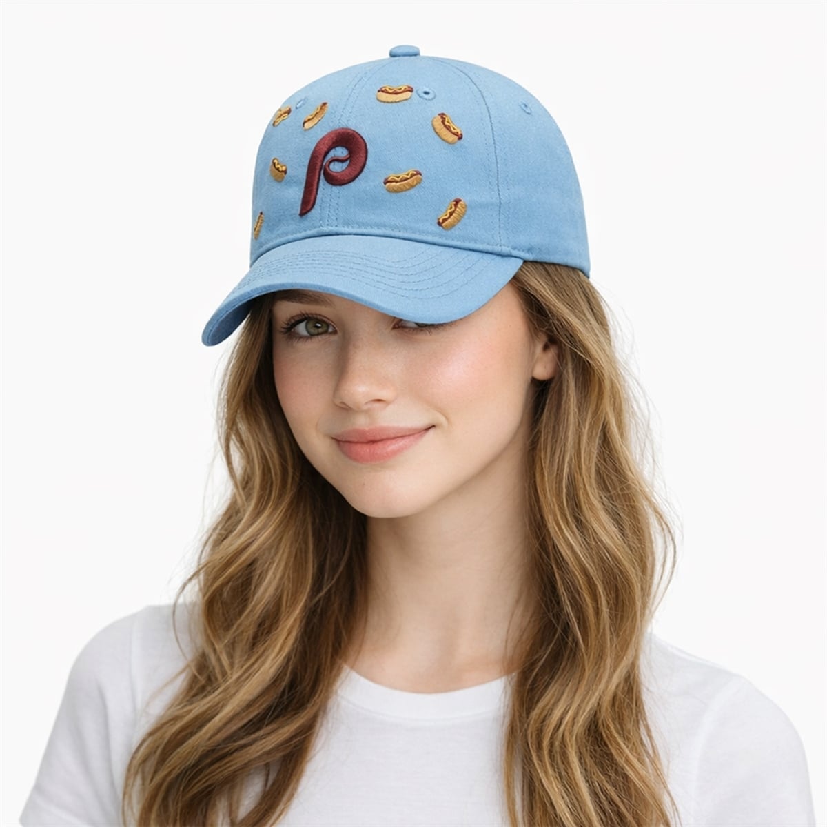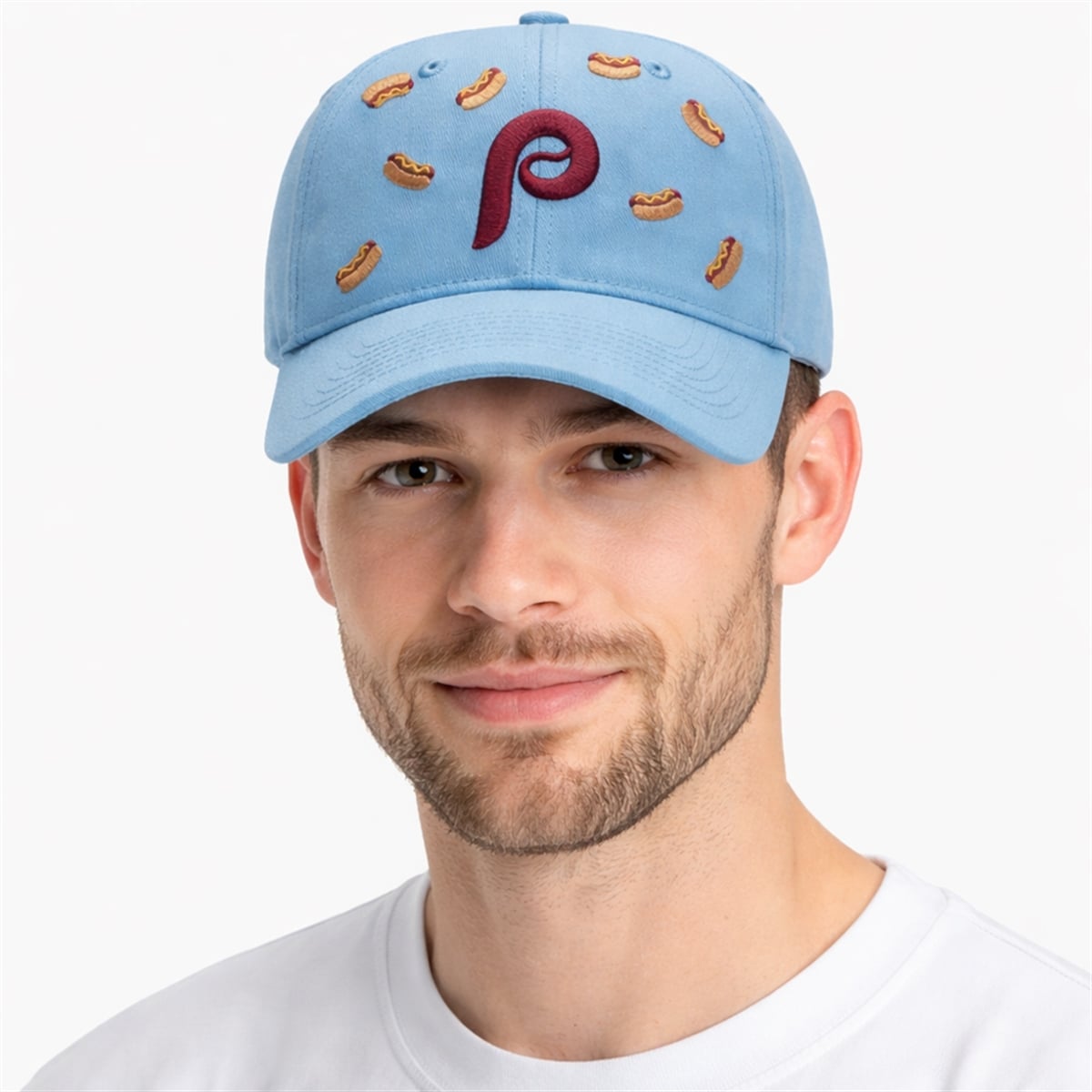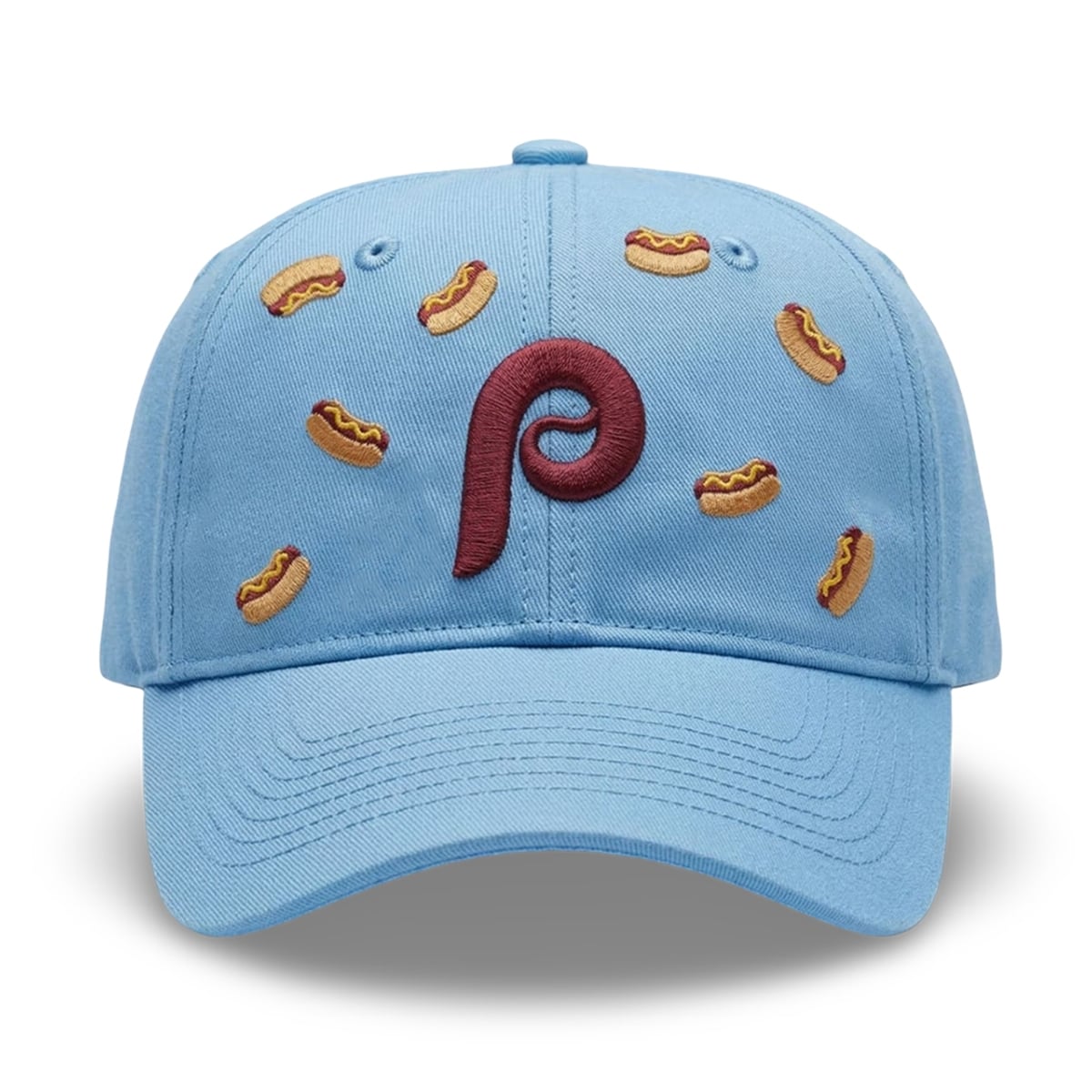 Baseball and hot dogs are fundamentally linked, but in Philadelphia, the stadium frank is a true cultural touchstone that brings thousands of fans together. This hat is a wearable tribute to those warm summer evenings spent cheering from the stands. By combining the vintage powder blue of the team’s historic uniforms with a playful nod to the fans’ favorite game-day meal, the design captures the pure, unadulterated joy of baseball. It is a reminder that sports are not just about the final score; they are about the traditions, the food, and the memories made along the way.