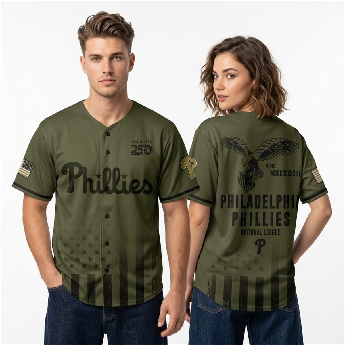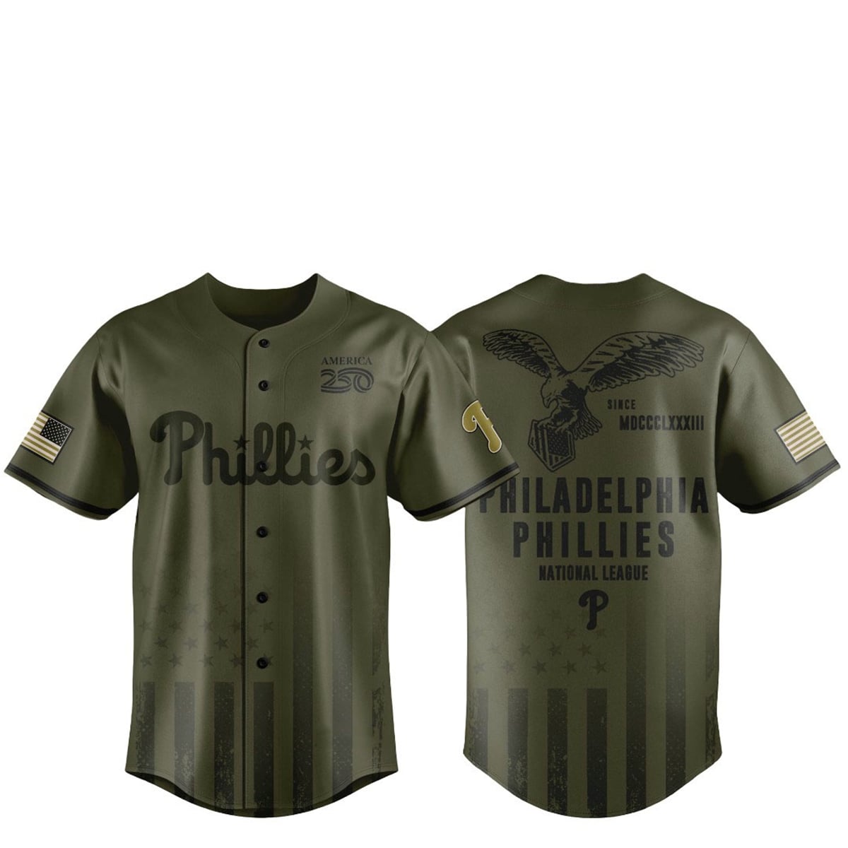 Step into a monumental year of baseball history with the 2026 Phillies Armed Forces Day Jersey. Designed to coincide with the nation’s Semiquincentennial celebrations, this striking olive-green piece merges undeniable team pride with a profound tribute to the United States military.