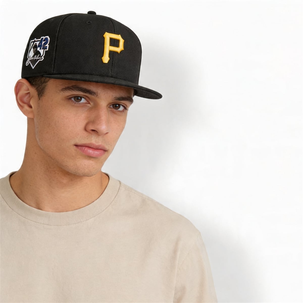 The hat is a visual masterpiece that blends iconic team branding with powerful historical imagery. The cap features the classic, deep black crown and visor, providing the perfect dark canvas for the bold, golden-yellow Pittsburgh Pirates ‘P‘ prominently on the front. However, the true centerpiece of this 2026 edition is the intricate side patch on the right panel. This commemorative emblem showcases a stylized portrait of Jackie Robinson, his signature, and the universally retired number ‘42‘ set against a home plate backdrop. The colorway of the patch perfectly complements the traditional Pirates aesthetic, creating a seamless integration of team pride and league-wide history.