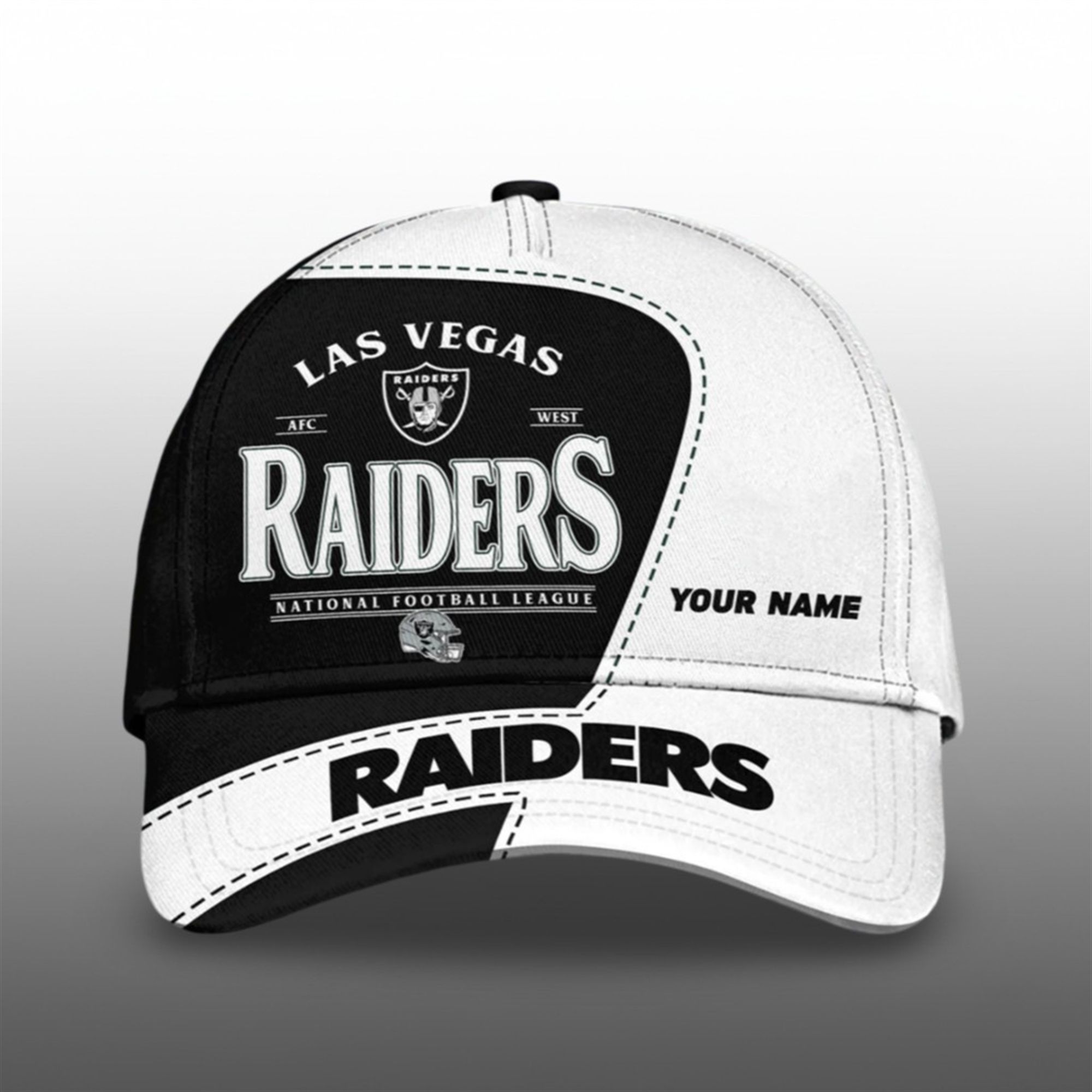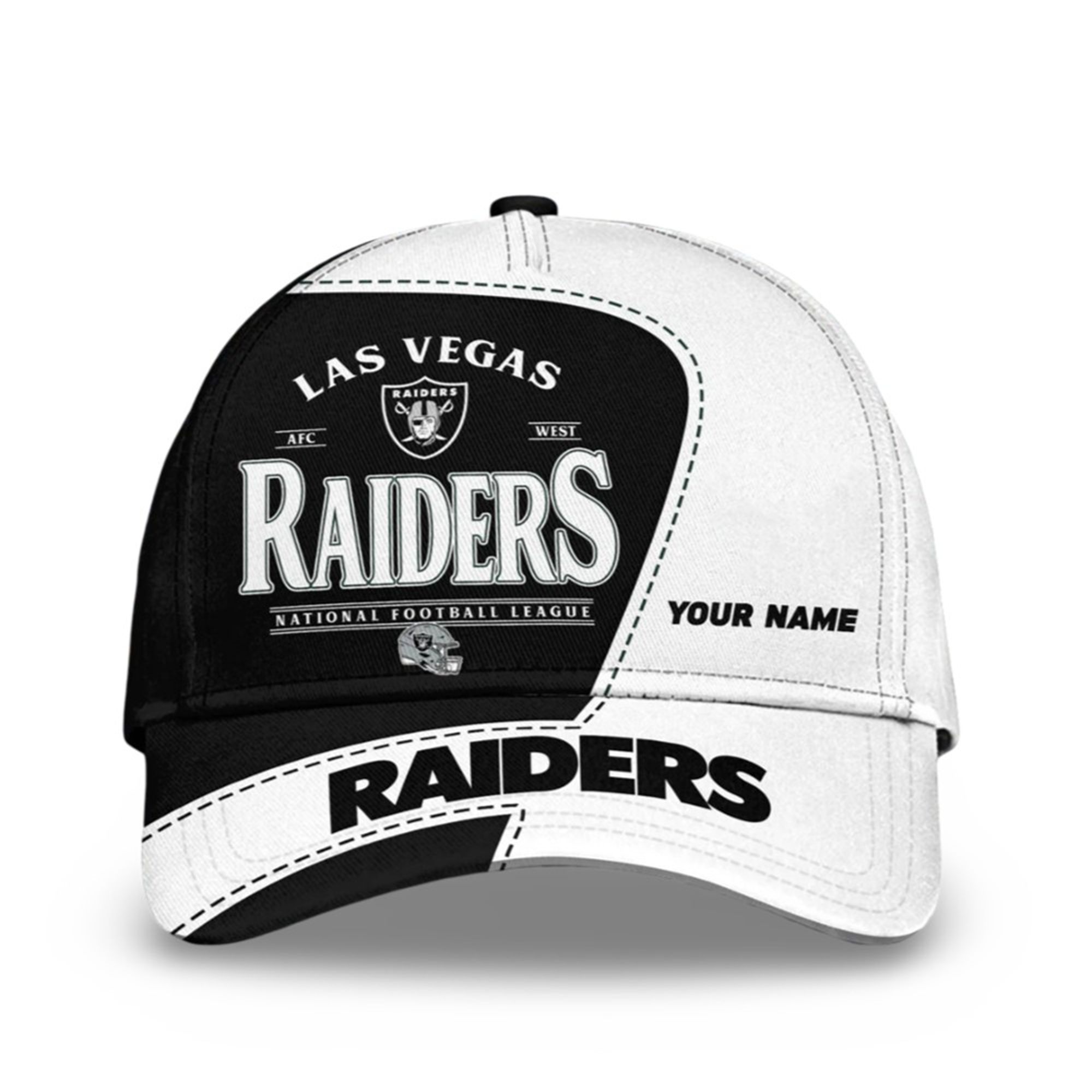 This isn’t just a hat; it’s a piece of memorabilia designed for the modern fan. We have moved beyond basic team logos. This cap features a dynamic, high-contrast design that captures the aggressive spirit of the Raiders. The left side features the iconic deep black associated with the “Black Hole,” housing the team wordmark and shield, while the right side offers a pristine white canvas perfect for your custom personalization.