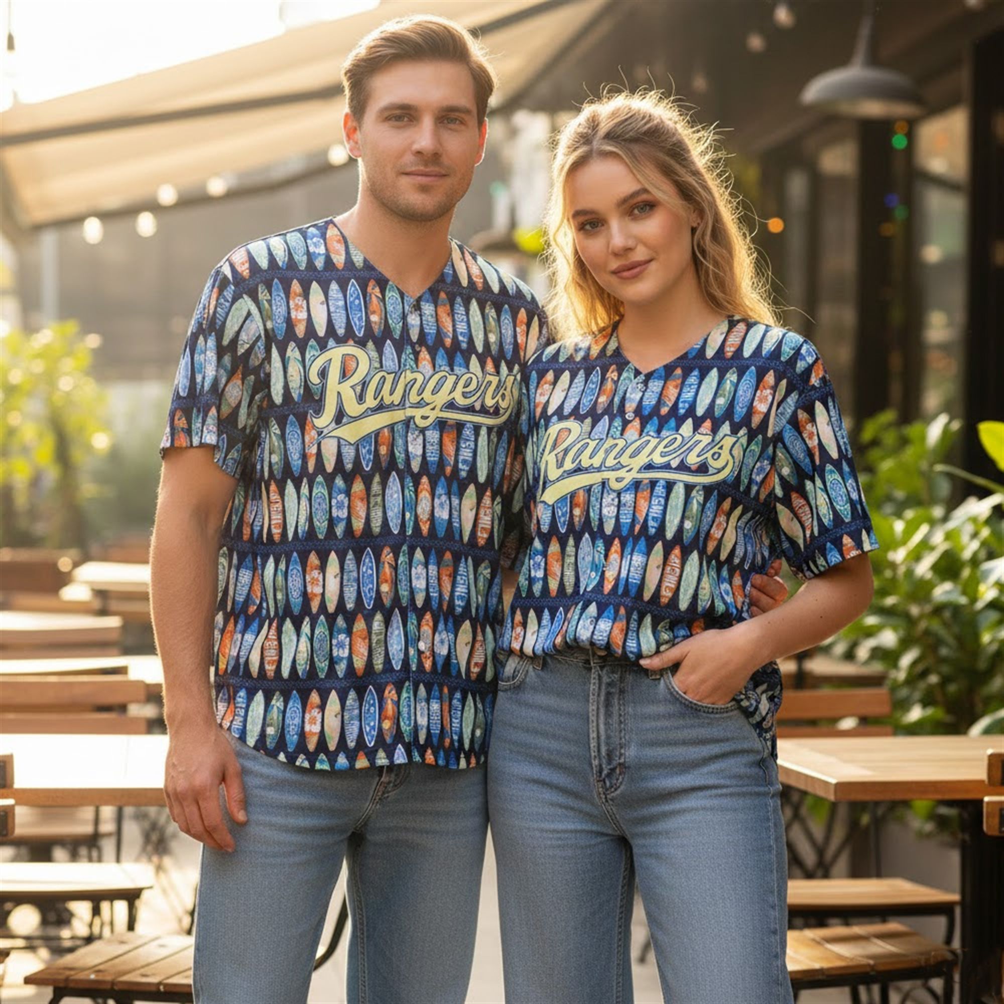 Baseball season just got a whole lot more relaxing with the viral 2026 Rangers Margaritaville Jersey Giveaway. This design is a bold departure from standard team apparel, swapping traditional pinstripes for a sea of vibrant surfboards bearing fun slogans like “Fins Up” and “Surf’s Up.”