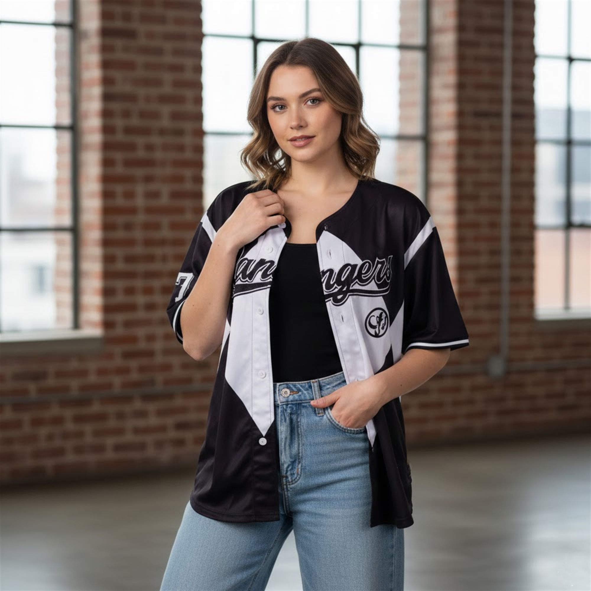 The 2026 Theme Night calendar delivered an absolute masterpiece by combining the beloved Texas Rangers franchise with the global phenomenon of the Mighty Morphin Power Rangers. This specific edition pays homage to the Black Ranger, integrating the classic television show’s visual identity directly into a traditional baseball button-down layout. The striking contrast of the black base with the sharp white diamond pattern framing the chest creates a visually arresting look. The iconic “Rangers” script sweeps across the front, taking on a dual meaning that celebrates both the baseball team and the legendary team of teenage superheroes.