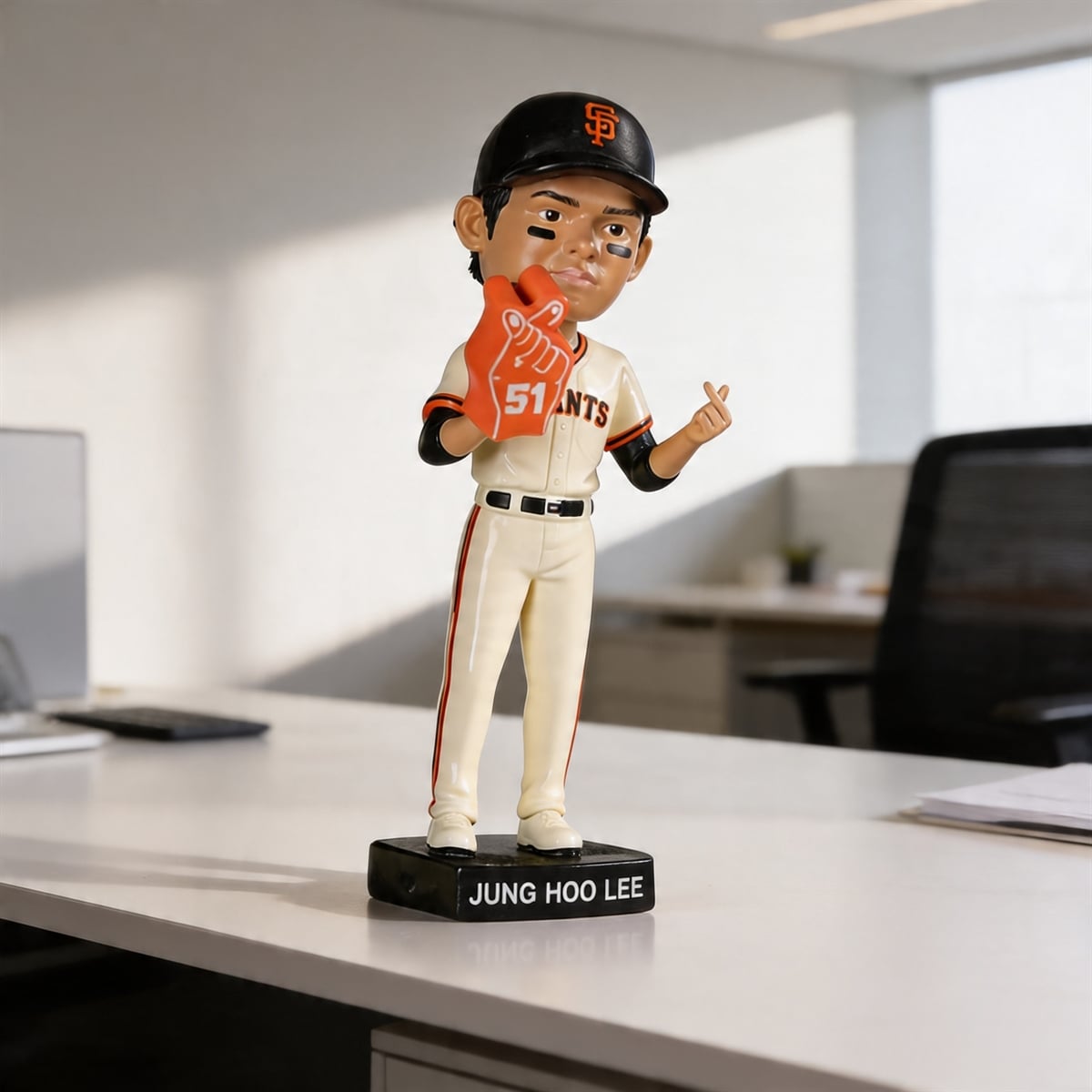 This collectible goes far beyond a simple player likeness; it carries significant cultural meaning. The “finger heart” gesture that Lee is displaying is a massive cultural phenomenon originating in South Korea, widely popularized by K-pop idols and Korean actors to express love, gratitude, and a deep connection with their supporters. By featuring this specific pose, the bobblehead symbolizes Lee’s immense appreciation for the San Francisco fanbase that welcomed him with open arms. It bridges the gap between major league athletics and global pop culture, transforming a baseball collectible into a symbol of cross-cultural unity and fan affection.