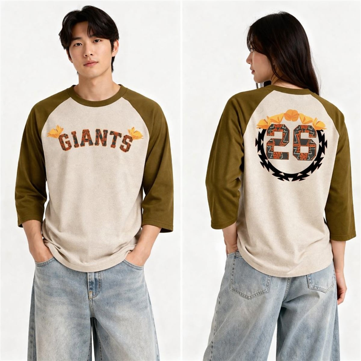 Celebrate the vibrant intersection of sports and culture with the 2026 San Francisco Giants Native American Heritage Night Shirt Giveaway. This distinct raglan stands as a bold visual tribute, merging classic baseball aesthetics with rich, indigenous-inspired artistry.