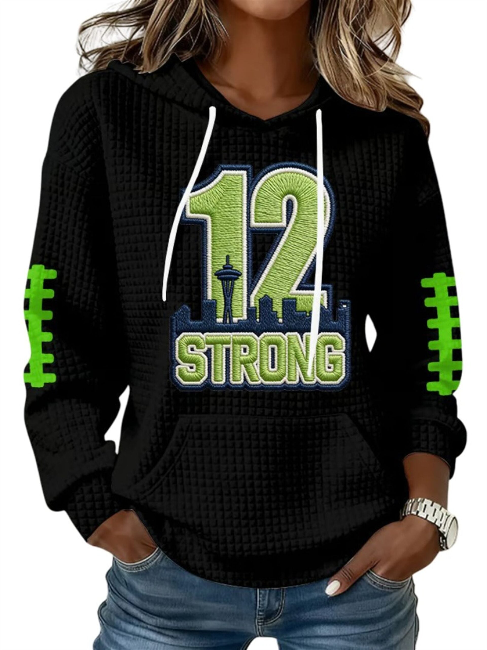 Elevate your fan wardrobe with a piece that speaks louder than the crowd at Lumen Field. The 2026 Seahawks 12 Strong Waffle Hoodie is not just merchandise; it is a wearable banner of allegiance. Whether you are rallying at a tailgate or representing the Pacific Northwest from afar, this hoodie ensures your loyalty is unmistakable.