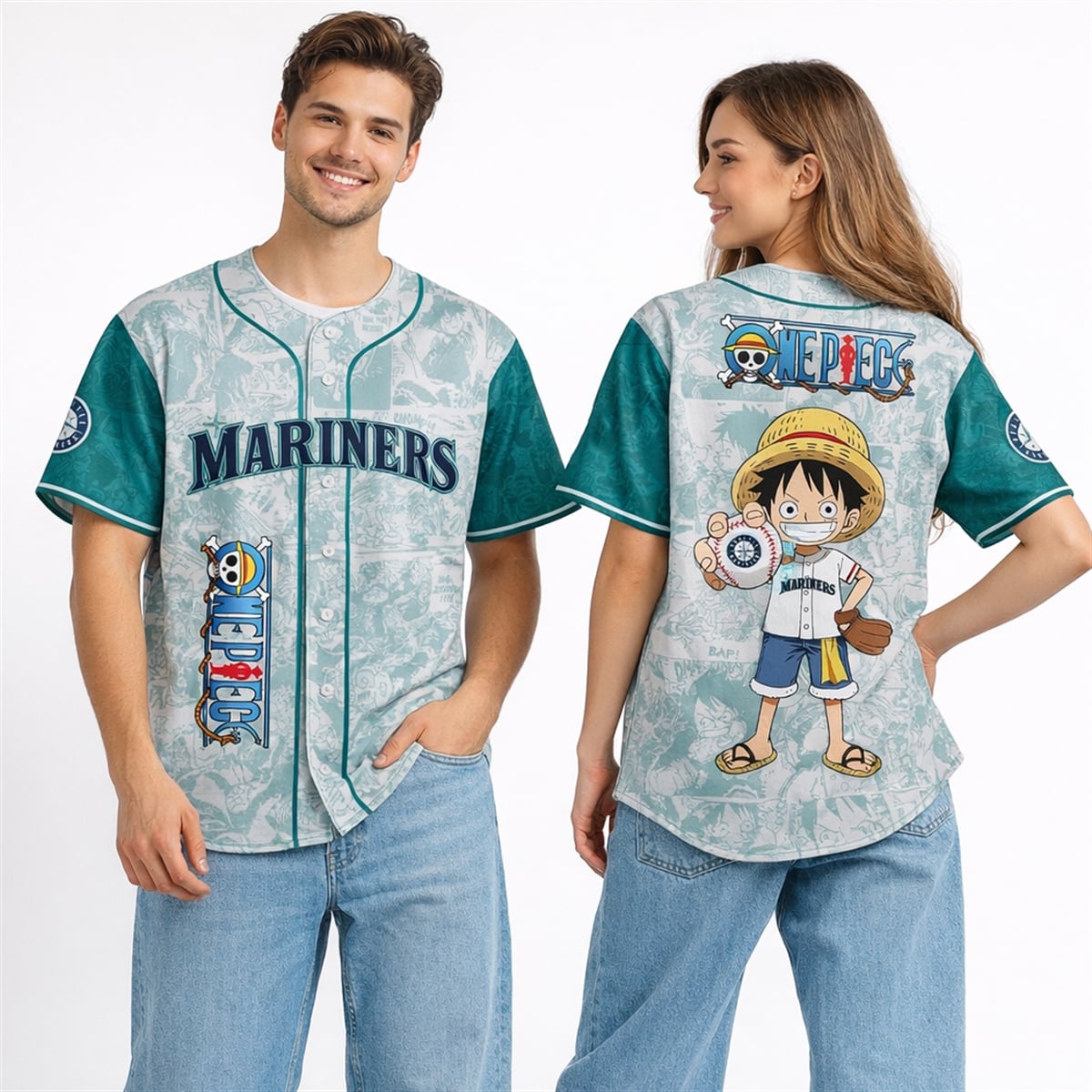 At first glance, baseball and anime might seem worlds apart, but the synergy between the Seattle Mariners and One Piece is a match made in thematic heaven. Both franchises are deeply tied to the concept of the sea. The Mariners represent a city built on maritime history, while One Piece follows the epic nautical voyage of pirates searching for ultimate glory. Furthermore, Luffy’s relentless drive to become the Pirate King perfectly mirrors a baseball team’s grueling, passionate quest to win the World Series. This jersey is a symbolic tribute to ambition, teamwork, and navigating uncharted waters.