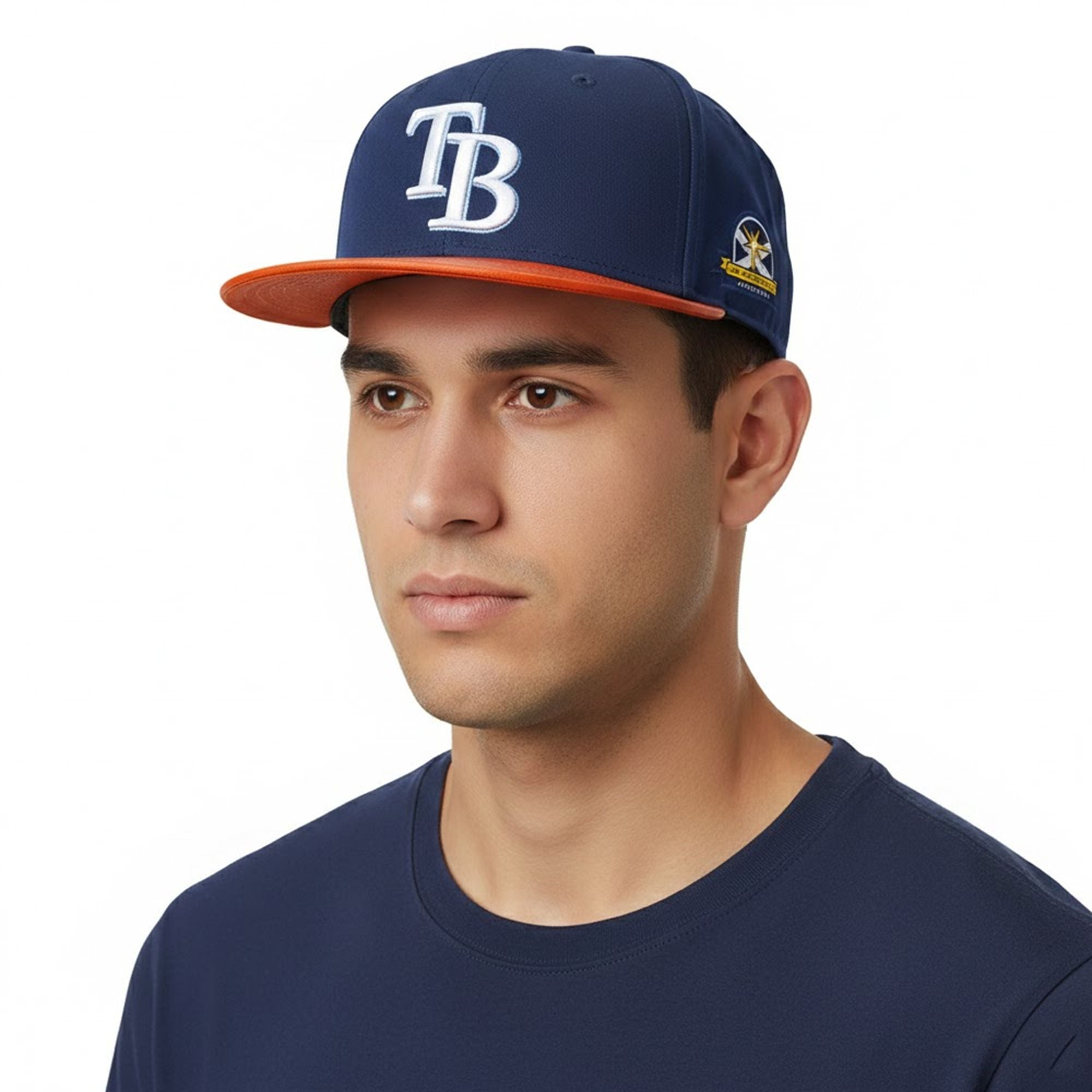 The tradition of stadium giveaways is a cornerstone of the baseball fan experience, and the 2026 season has introduced one of the most visually striking pieces of memorabilia to date. This specific hat prominently features the classic interlocking Tampa Bay Rays“TB” logo in crisp, contrasting white, centered on a deep, navy blue crown. The most defining visual characteristic is the vibrant orange flat brim, providing a bold pop of color that instantly stands out in the stands of Tropicana Field or out in the city.