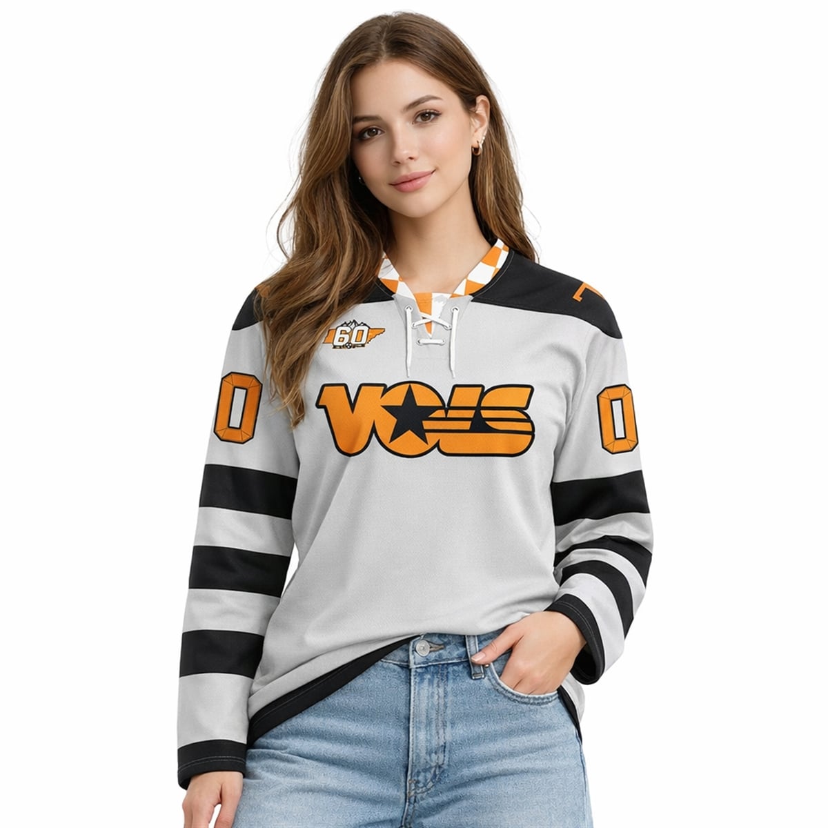 Every stitch of the jersey tells a story. The checkered collar represents the world-famous end zones of Neyland Stadium, a symbol of the “finish line” and excellence. The center star within the ‘O’ is a nod to the Volunteer State’s role as a beacon of leadership and courage. By wearing this jersey, you aren’t just supporting a team; you are carrying the 60-year legacy of students who built a hockey culture from scratch in the heart of football country. It represents resilience, the “Power T” spirit, and the cold-on-ice, hot-on-the-field duality of Knoxville sports.