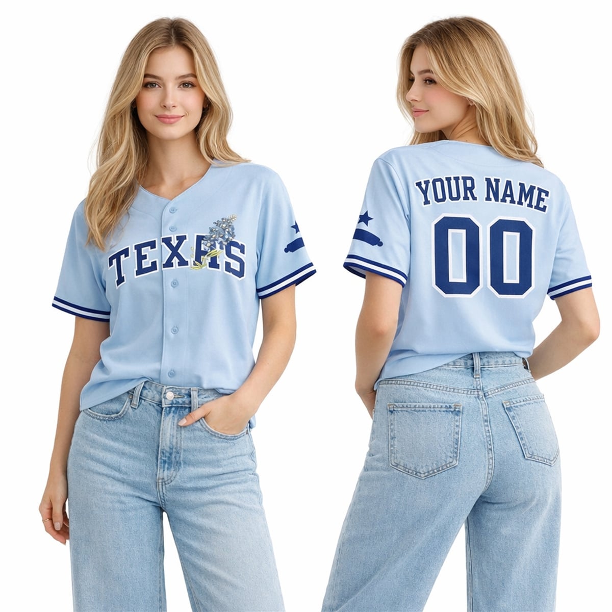 The jersey represents a bold new visual chapter for the franchise, stepping away from traditional team branding to embrace a holistic state-wide identity. The collection offers two distinct visual pathways: a striking light blue silhouette and a crisp, classic white version. Both variations prominently feature a commanding “TEXAS” arched wordmark across the chest.