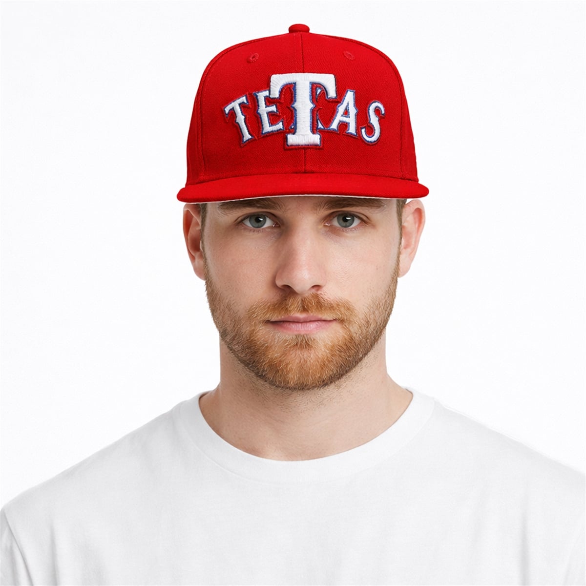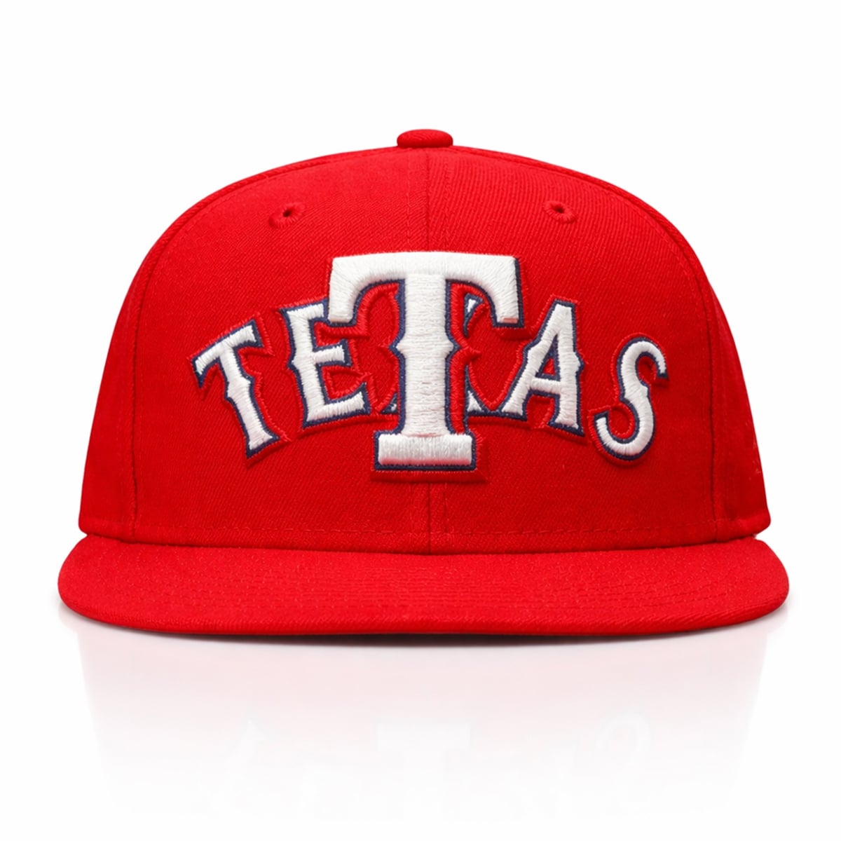 The visual profile of this headwear is dominated by a striking, vibrant red hue that instantly commands attention in any environment. Front and center, the word “TETAS” is boldly displayed using a classic, universally recognizable baseball typography. The lettering features a pristine white core, heavily stylized with sharp, athletic serifs, and is outlined in a deep, contrasting navy blue. This specific color blocking creates a dynamic pop-art effect, ensuring the text is highly readable from a distance.