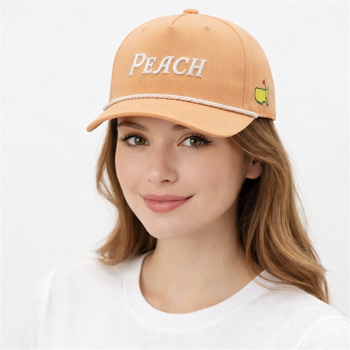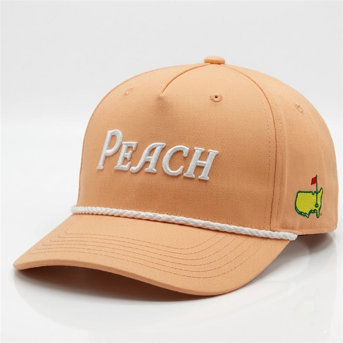 The design of this cap is a brilliant homage to the location of the most prestigious tournament in golf. Augusta National is located in Georgia, globally recognized as the “Peach State.” By boldly featuring the word “PEACH” alongside a soft pastel color palette, the cap directly honors the cultural identity and geographic roots of the tournament. The vintage rope styling also carries a distinct meaning, representing the timeless tradition and deep-rooted history of the game of golf, effortlessly bridging the gap between past legends and modern-day patrons.