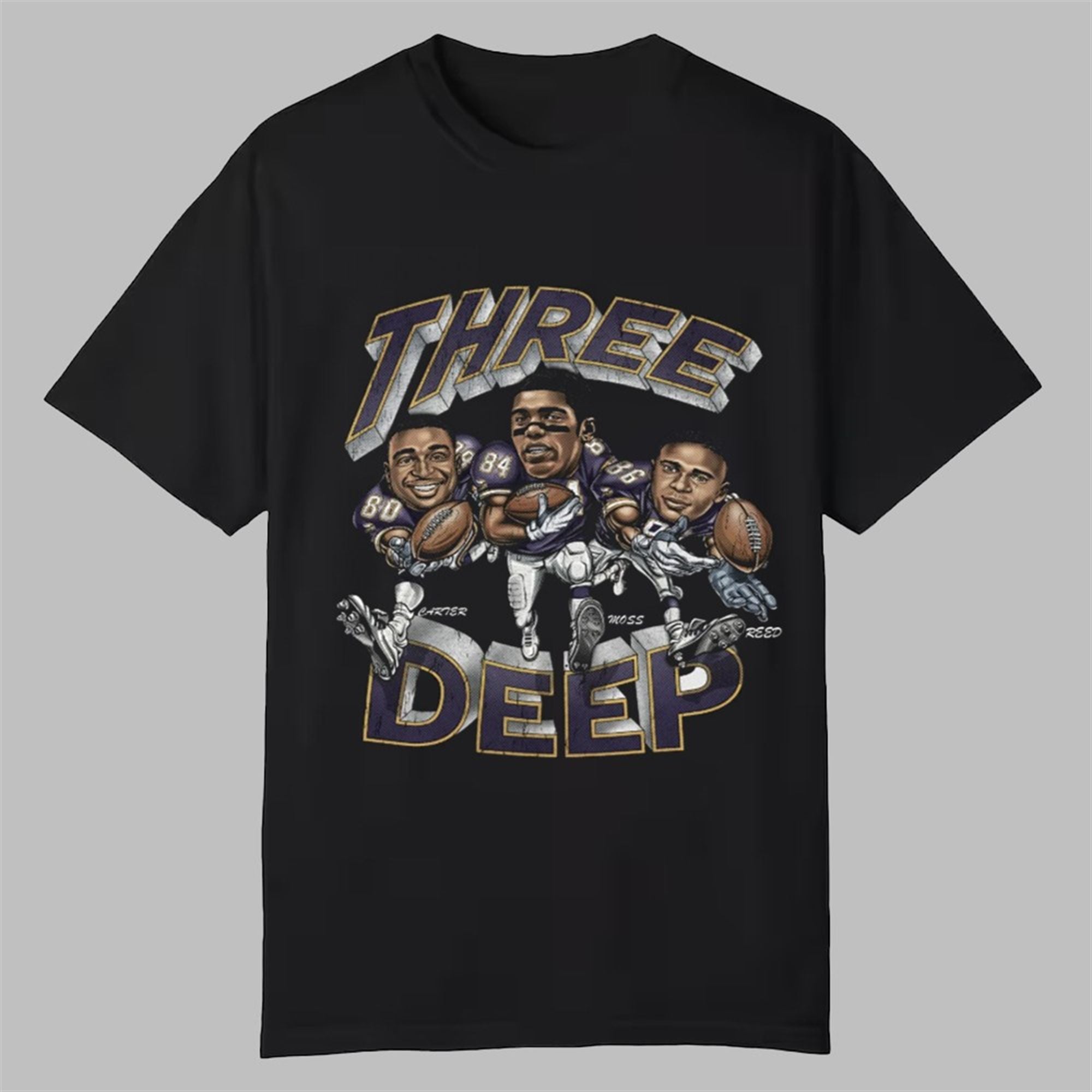 The shirt is a tribute to the “Three Deep” era, specifically the magical 1998 Minnesota Vikings season. During that year, this trio of wide receivers formed an unstoppable offensive juggernaut that led the team to a 15-1 record and shattered scoring records.