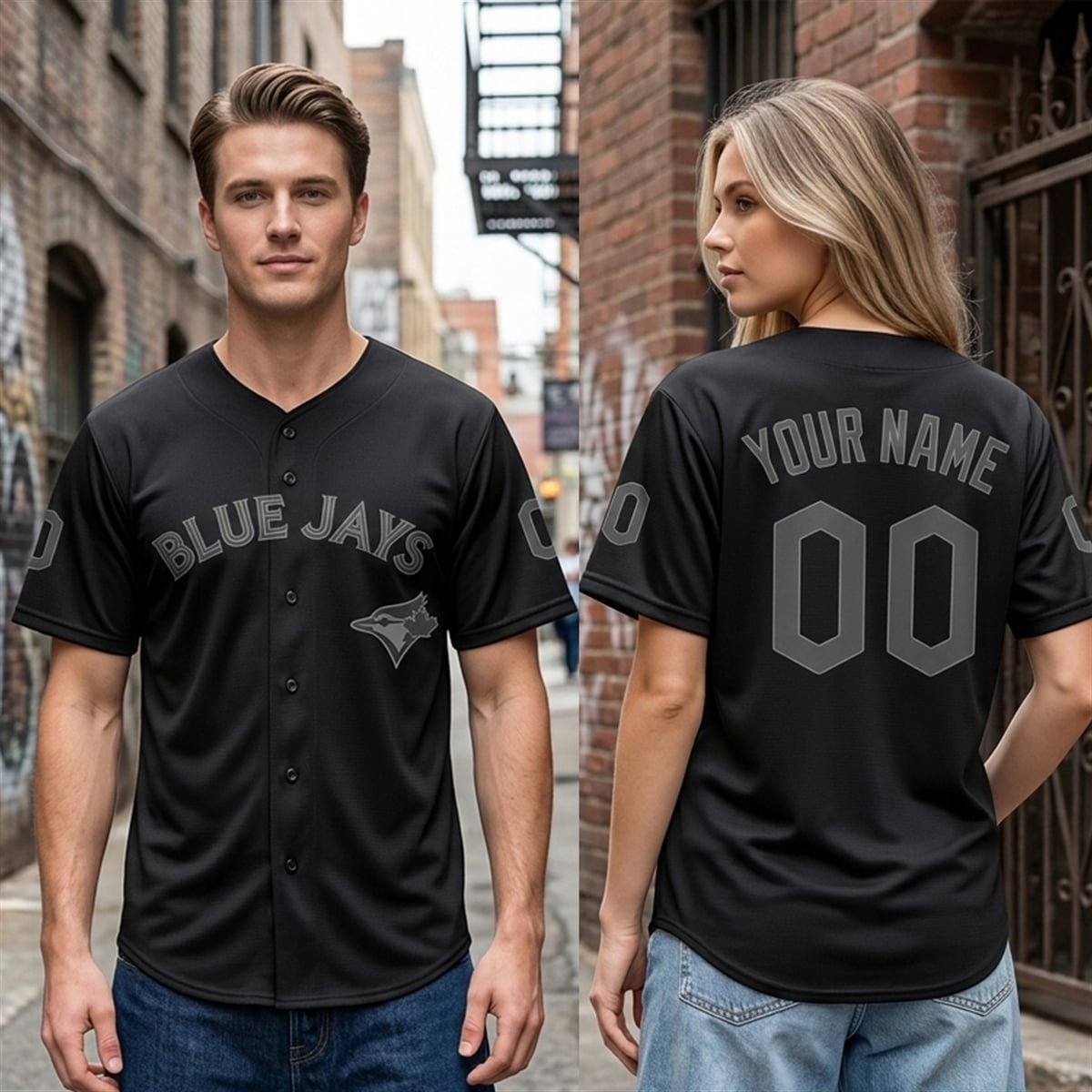 The jersey is a revolutionary departure from the traditional vibrant blues and bright whites of standard team apparel. This striking garment features a completely black base, offering a stealthy, understated look that instantly catches the eye. The iconic “BLUE JAYS” lettering across the chest, the classic bird emblem, and the sleeve detailing are all rendered in a meticulously coordinated tonal grey. This creates a ghosted, low-contrast effect that looks incredibly sharp under the stadium lights or city streetlamps.