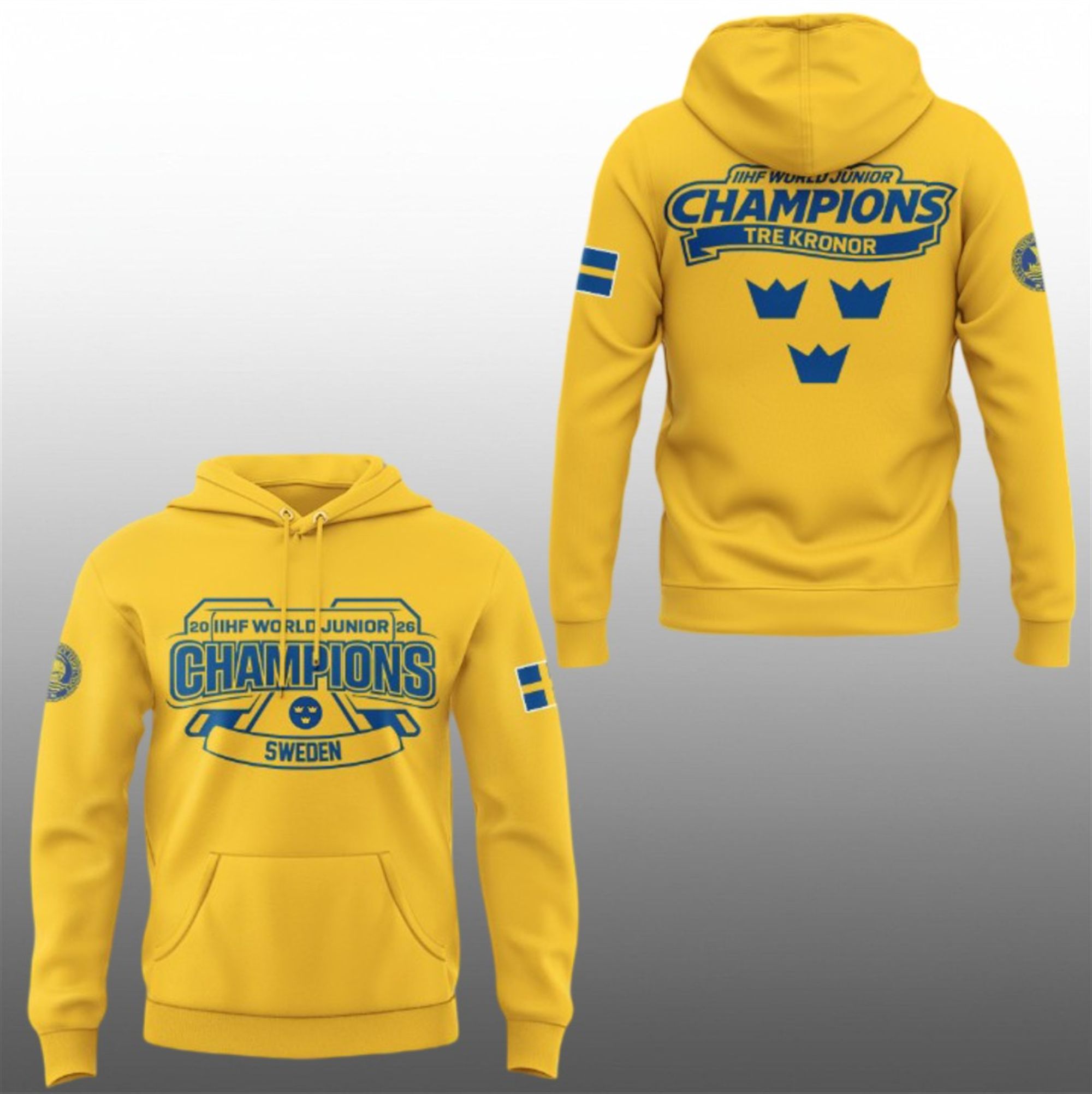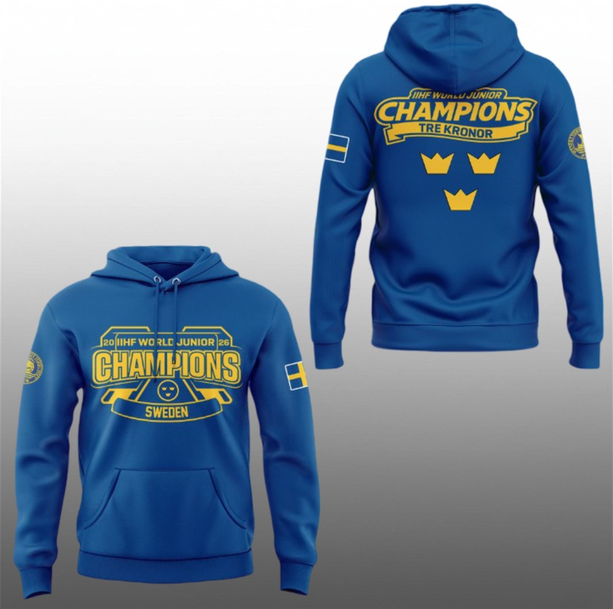 Celebrate a historic moment in hockey history with the ultimate fan tribute: the 2026 Tre Kronor MĂ€stare Sweden World Junior Champions Hoodie. After a tournament defined by grit, skill, and unforgettable plays, Sweden has claimed the gold, solidifying their dominance on the international stage.