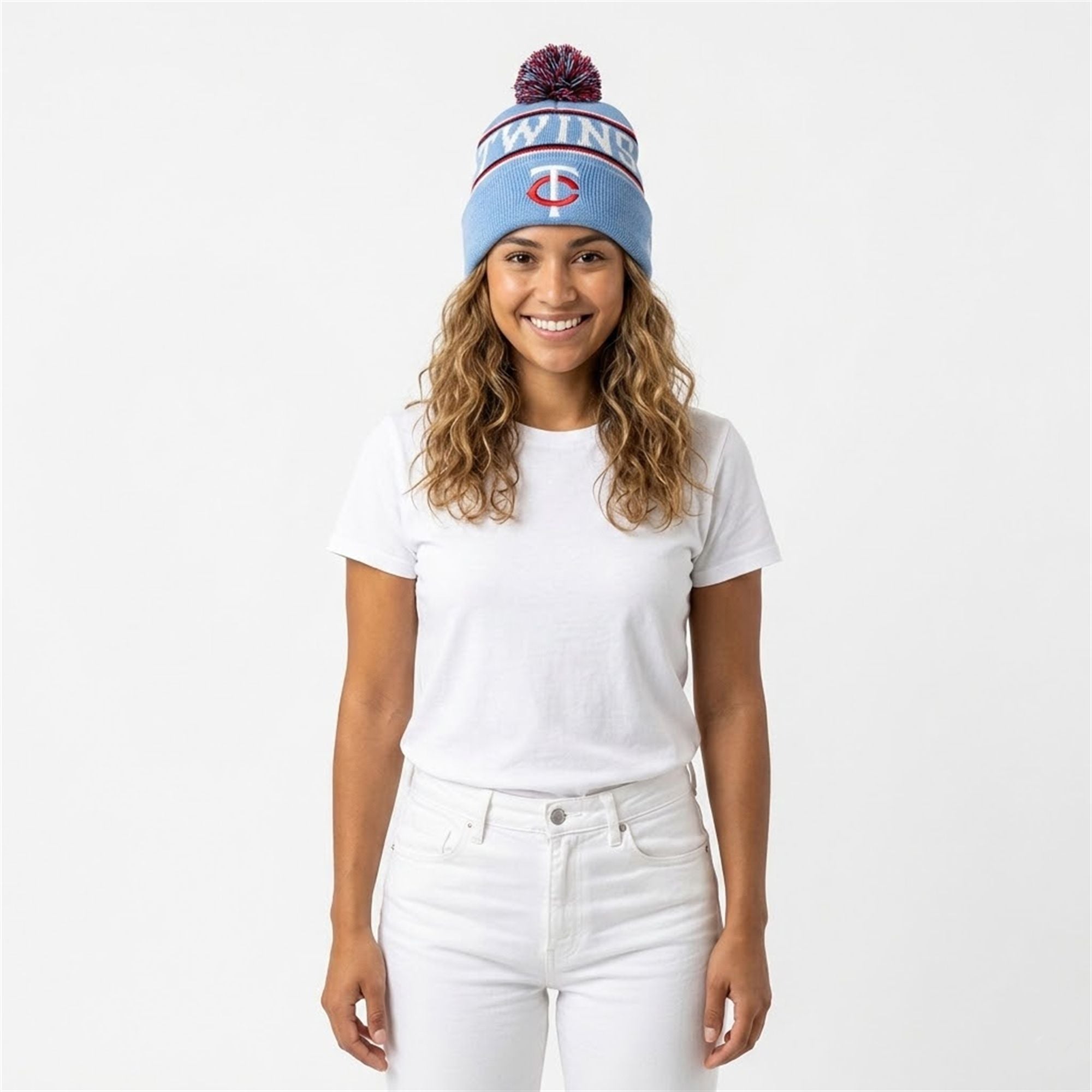 Every visual element of this beanie is steeped in franchise history and regional pride. The prominent, intertwining “TC” logo on the cuff stands for the Twin Cities of Minneapolis and St. Paul, symbolizing the unity of the fan base across the metropolitan area. Above the cuff, the bold “TWINS” lettering leaves absolutely no doubt about where your allegiances lie. Perhaps the most meaningful design choice is the striking powder blue base color. This specific shade pays a direct homage to the beloved vintage road uniforms the franchise wore in the late 1970s and 1980s, evoking a deep sense of nostalgia. Topping off the design is the tri-color red, white, and navy blue pom-pom, perfectly matching the team colors and adding a festive, celebratory spirit fitting for Opening Day.