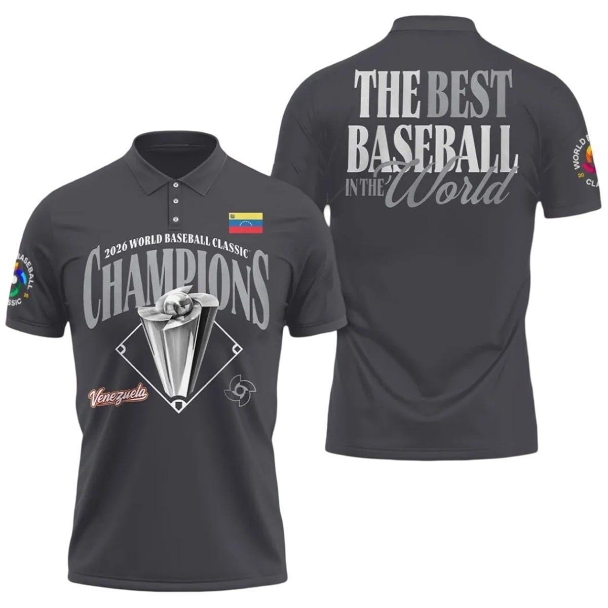 The internet instantly exploded when Team Venezuela clinched the 2026 championship title, transforming this specific polo design into a massive trending sensation across global social media platforms. Fans spanning from the streets of Caracas to the sports bars of Miami endlessly shared images of the team celebrating, sparking an unprecedented hunt for this exact championship memorabilia. The bold, unapologetic claim printed on the back—”The Best Baseball In The World”—resonated deeply, triggering viral sports debates, immense national pride, and a tidal wave of online sharing. Consequently, this visual piece of sports history dominated search trends, cementing its status as the most sought-after cultural artifact of the 2026 baseball season.