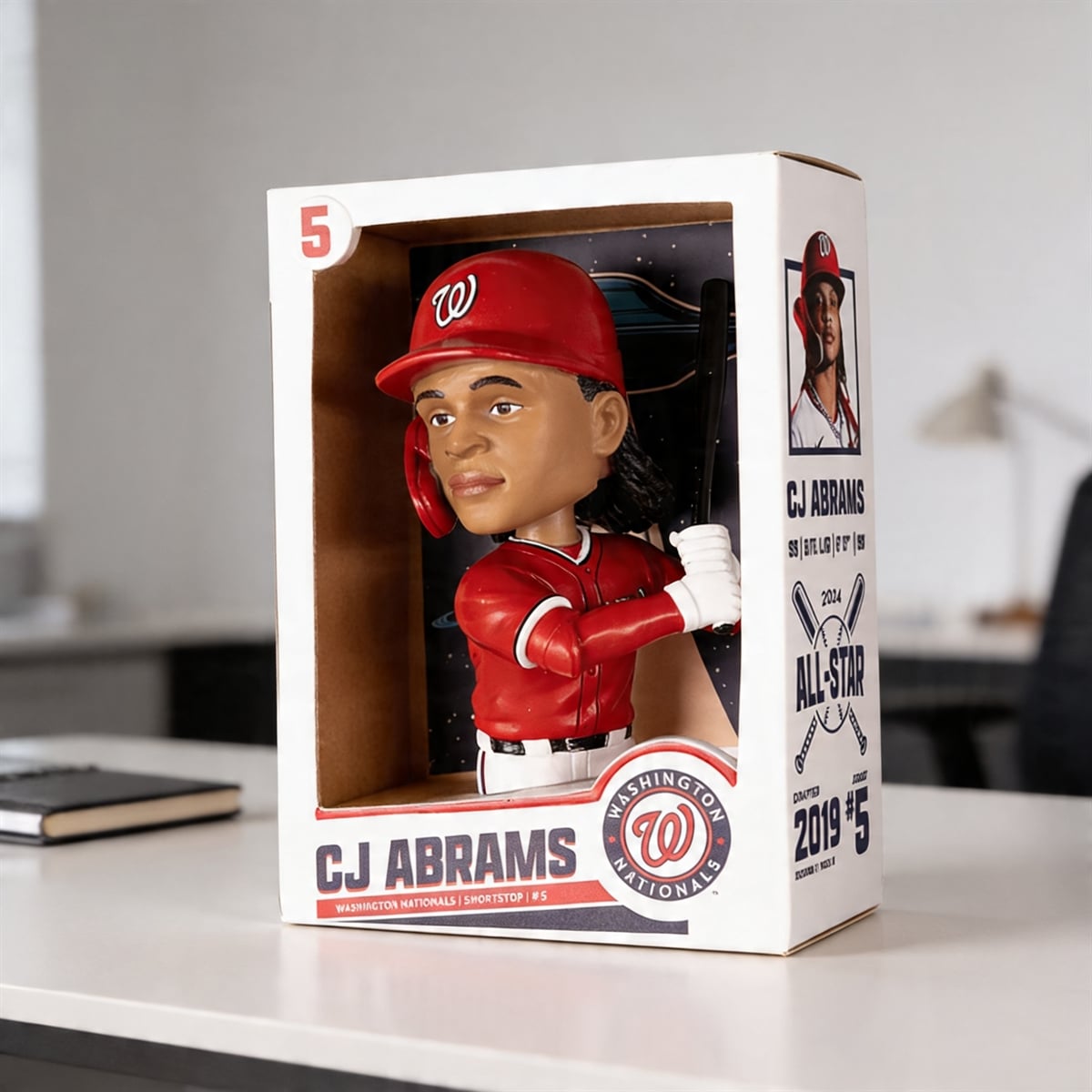 This distinct collectible is carefully tailored for several dedicated groups within the sports community. Die-hard Washington Nationals fans will view this as an essential, non-negotiable addition to their team-focused collections. Sports memorabilia investors who track the careers of rising stars will recognize the long-term historical value of an exclusive giveaway piece centered around a dynamic player like Abrams. Additionally, fantasy baseball enthusiasts and general followers who appreciate unique crossover collectibles—specifically those blending trading card aesthetics with three-dimensional figures—will find this piece irresistible for their personal display cases or office desks.
