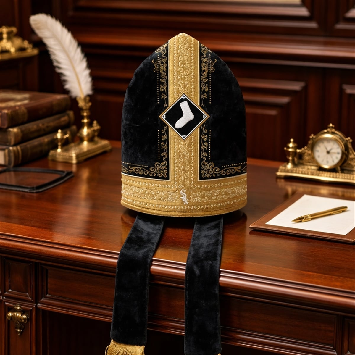 To understand the meaning of the White Sox Pope Hat, one must look at the culture of South Side baseball. For many, supporting their home team is not just a hobby; it is a lifelong devotion akin to a spiritual calling. This hat playfully leans into that concept, crowning the wearer as a devoted “pontiff” of baseball. The merging of majestic gold patterns with the stark, utilitarian black and white of the Sox logo represents a glorious blessing upon the team’s season. It symbolizes unwavering faith, unquestionable loyalty, and a humorous acknowledgment that baseball is, in its own way, a highly organized religion for its followers.