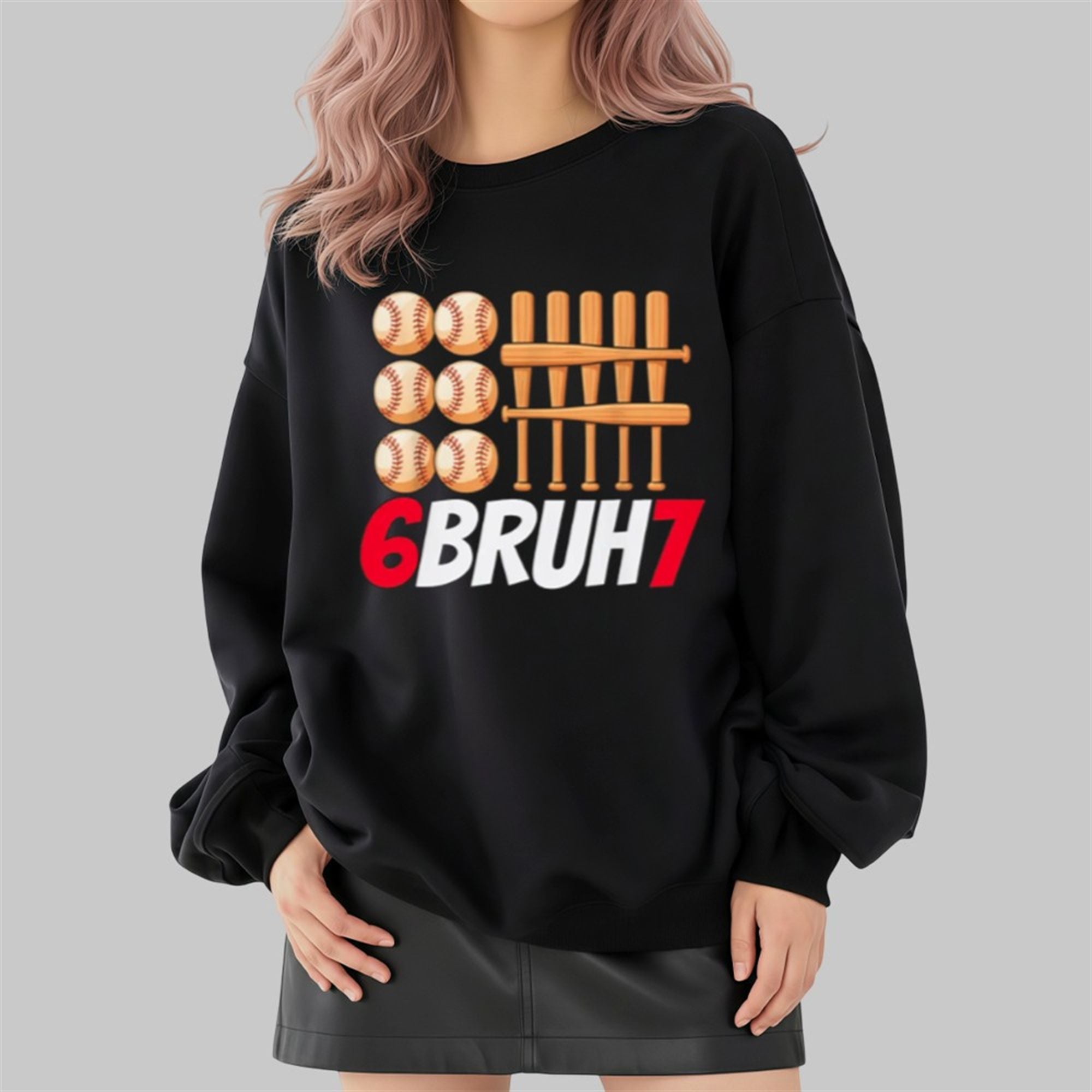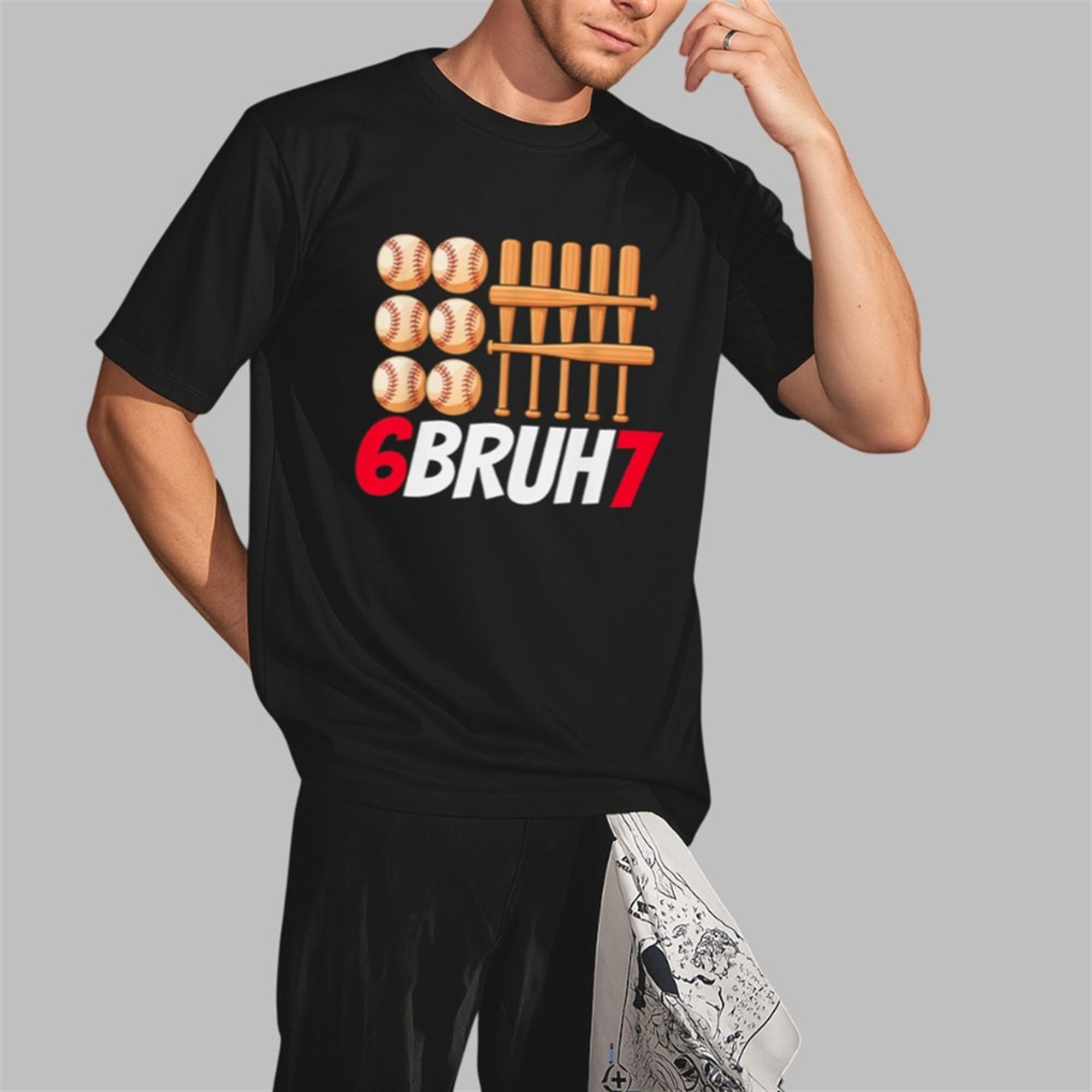 In a sea of generic “Eat, Sleep, Baseball, Repeat” shirts, the 6 Bruh 7 design stands out because it has personality. It acknowledges the grind of the game with a sense of humor. It’s specific enough to be an inside joke among teammates but broad enough to be recognized by anyone who follows internet culture.