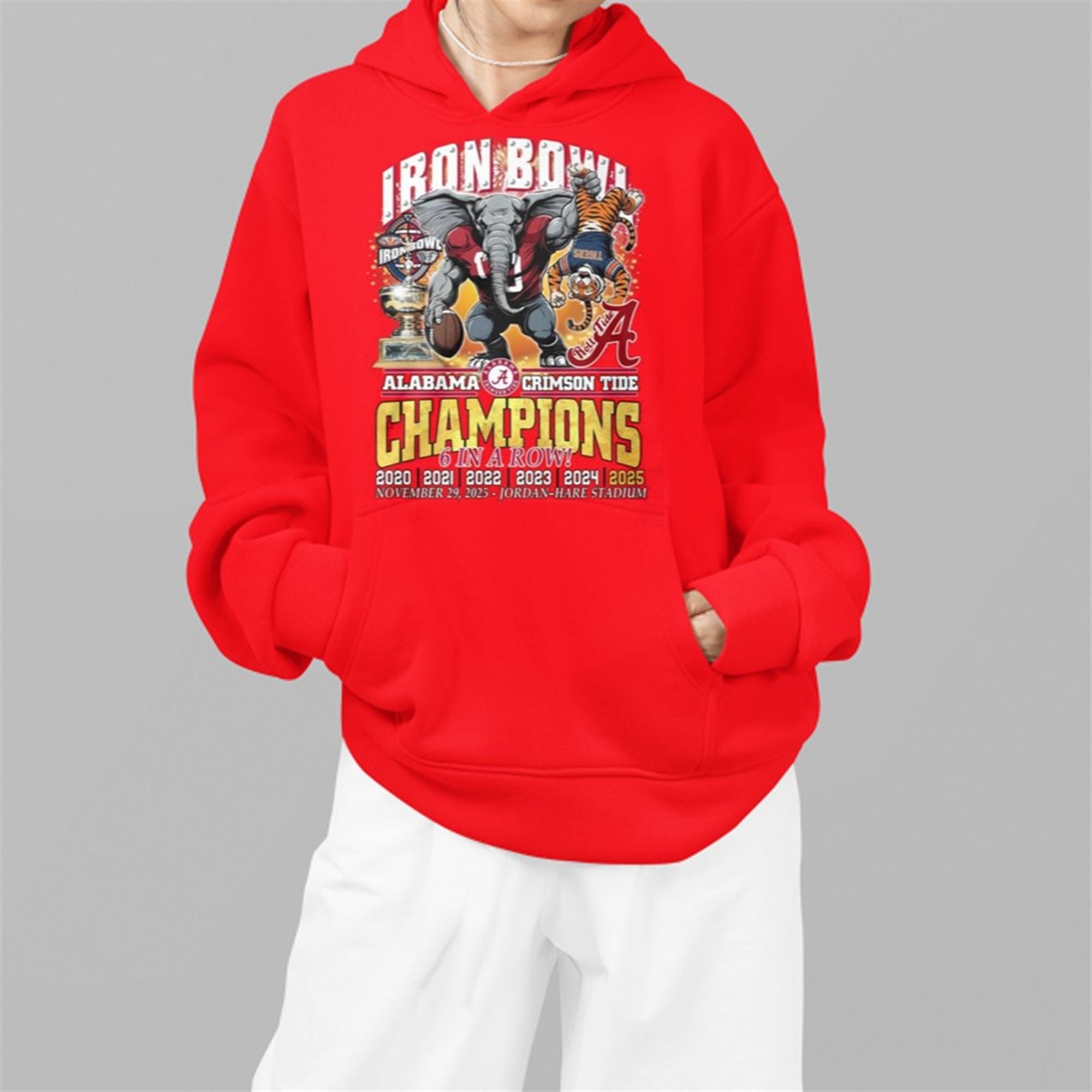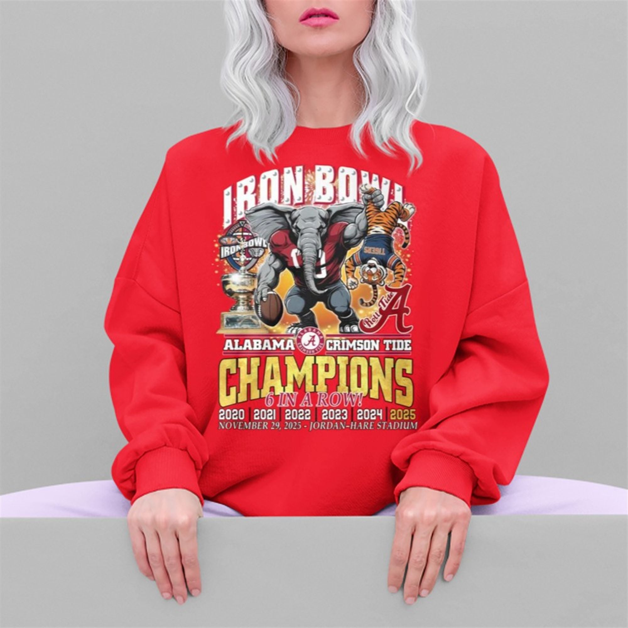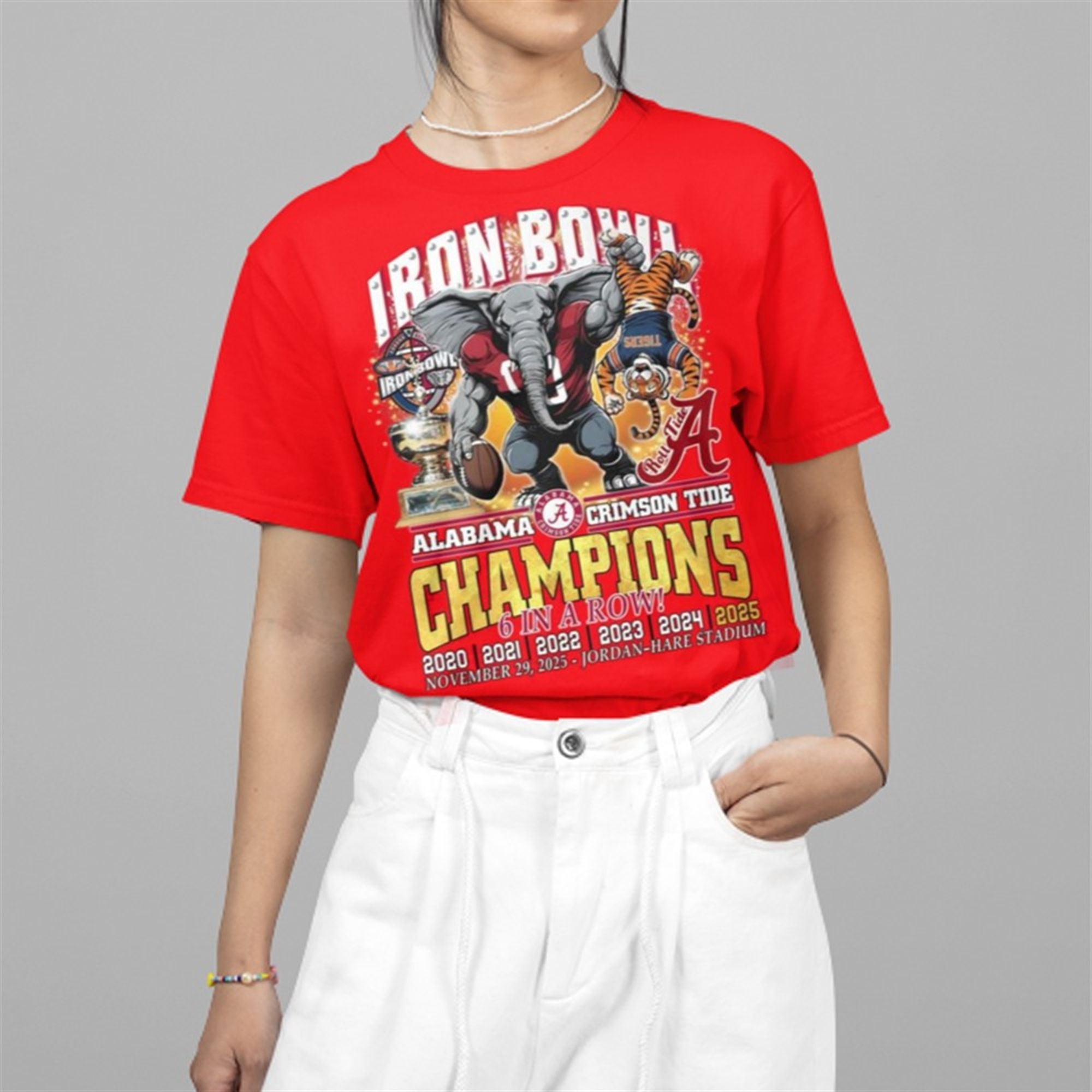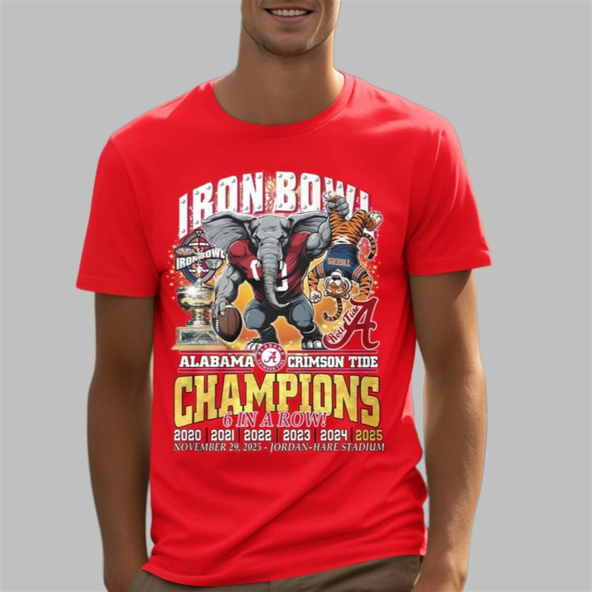 Alabama Crimson Tide Iron Bowl 6 In A Row Champions 2025 Shirt | Dominate the Rivalry