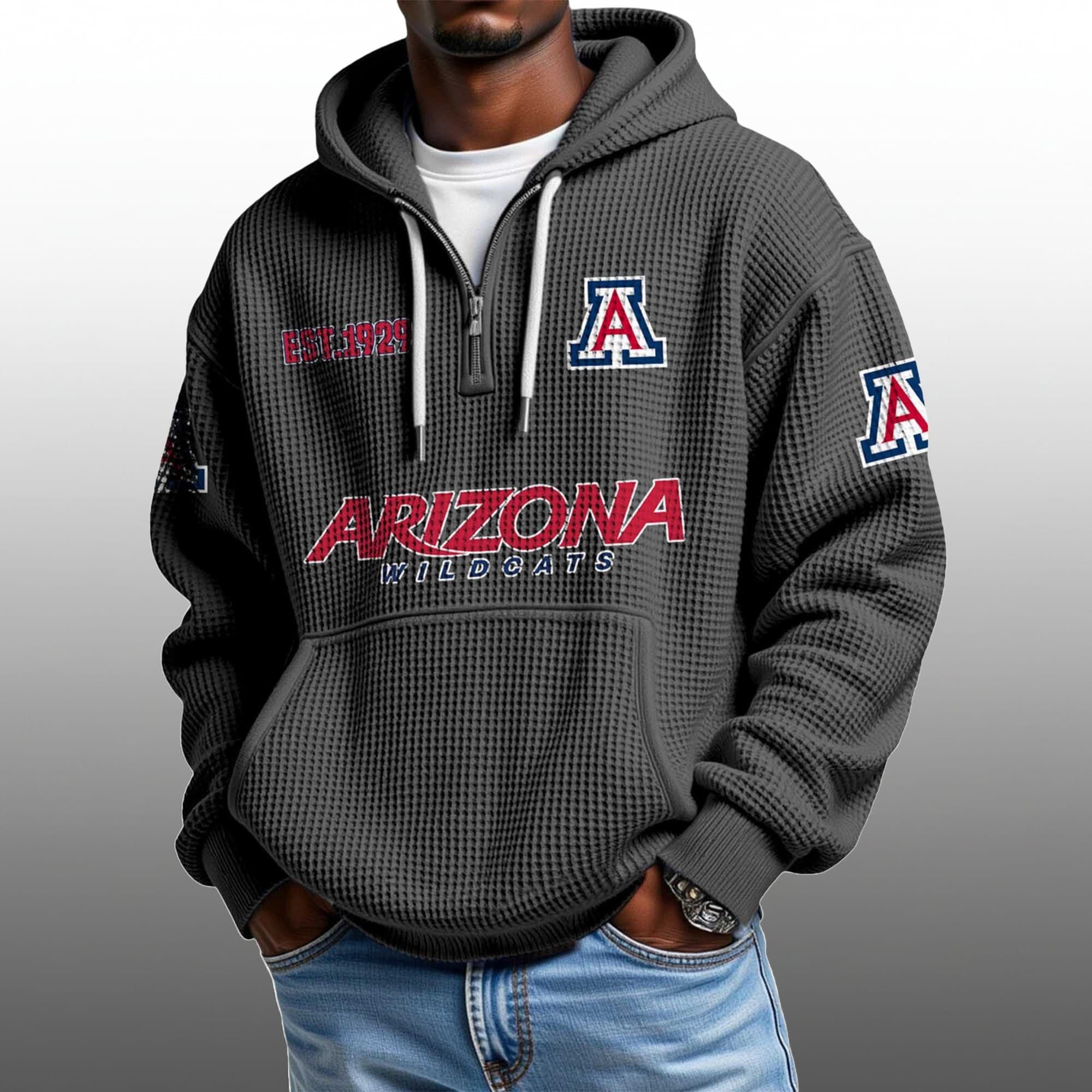 2026 Arizona Wildcats EST 1929 Quarter Zip Waffle Hoodie – Unleash Your Wildcat Pride