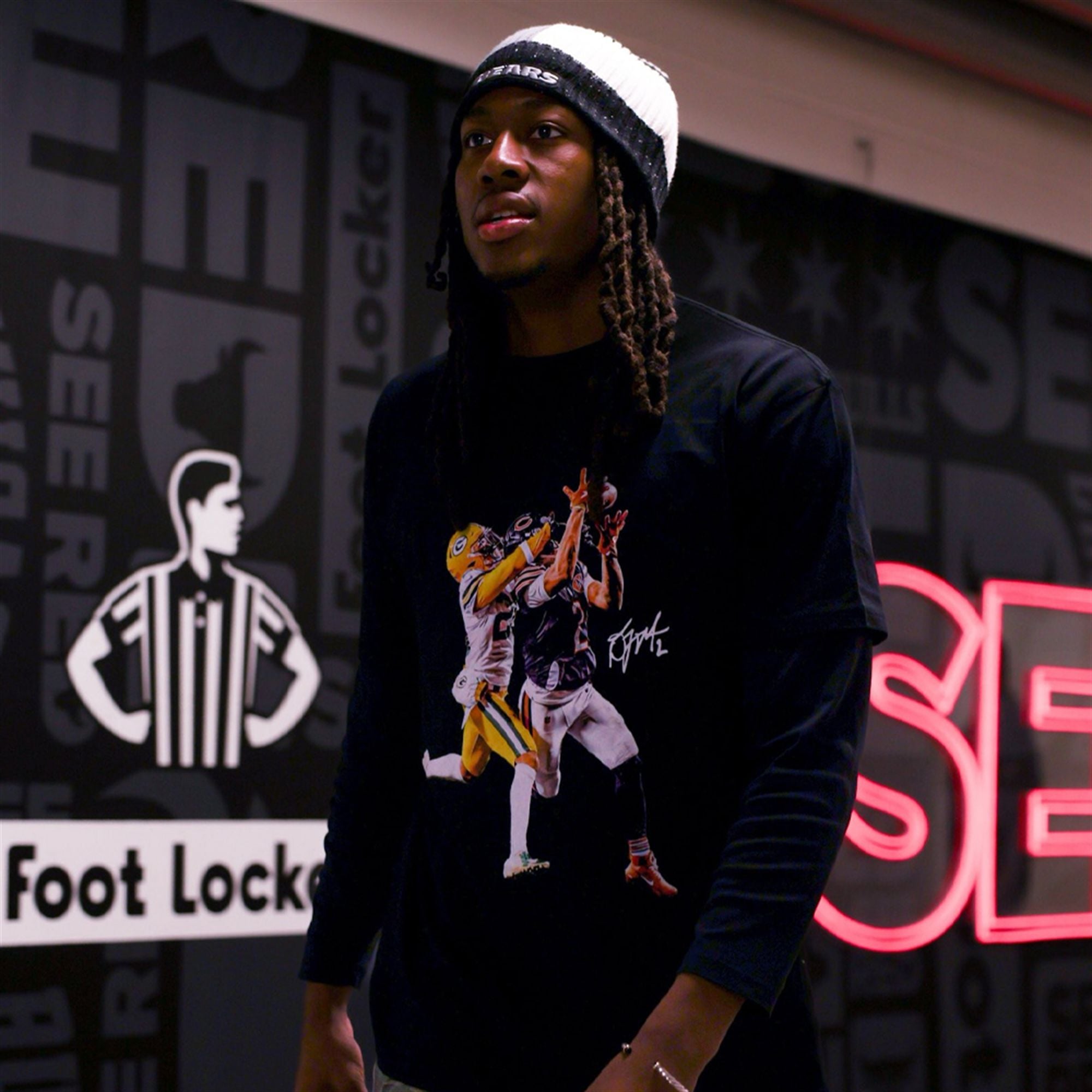 This shirt exploded across social media platforms because it perfectly encapsulates the “One Chicago” energy that fans crave. When guard Ayo Dosunmu—a hometown hero—walked into the arena rocking this tribute to the Bears’ star receiver, it wasn’t just a fashion choice; it was a powerful declaration of cross-sport solidarity. The image of a player celebrating an colleague’s success resonated deeply with the fanbase, instantly turning this specific graphic into the ultimate symbol of city-wide pride and unity.