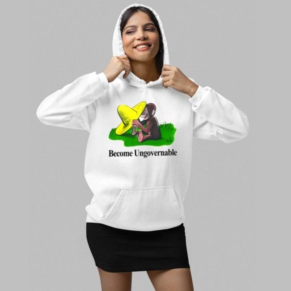 Below the image, the phrase “Become Ungovernable” is printed in a bold, clear font. This powerful message is the heart of the shirt’s design, encouraging a spirit of independence, nonconformity, and a rejection of unnecessary rules and restrictions. It’s a reminder to think for yourself, question authority (when appropriate!), and forge your own path.