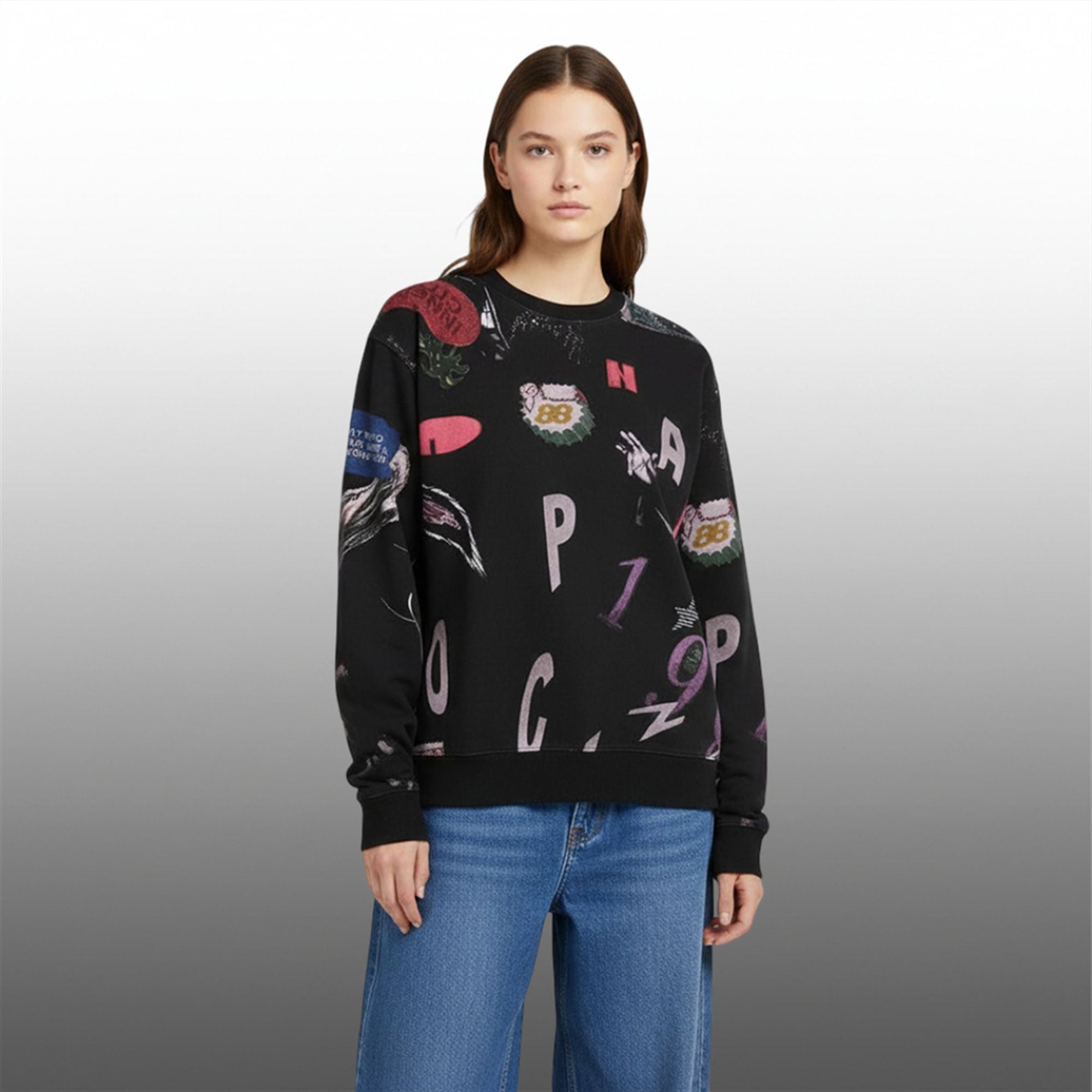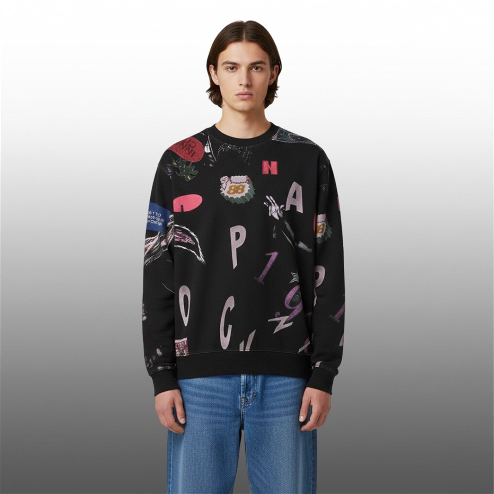 The sweatshirt is a high-fidelity tribute to the eclectic style seen in the hit Peacock series. The visual language of the sweatshirt includes floating letters (N, A, P, C, G) and numbers (specifically the “1988” motif, nodding to the golden era of hip-hop), interspersed with graphic patches. Notable details include the “Inner City” red badge, a “Way to Limits” blue text box, and gritty, sketch-style illustrations. The relaxed, drop-shoulder fit ensures it aligns with the oversized silhouette trend dominating late 2025 fashion, providing both ample movement and a relaxed “too cool to care” vibe.