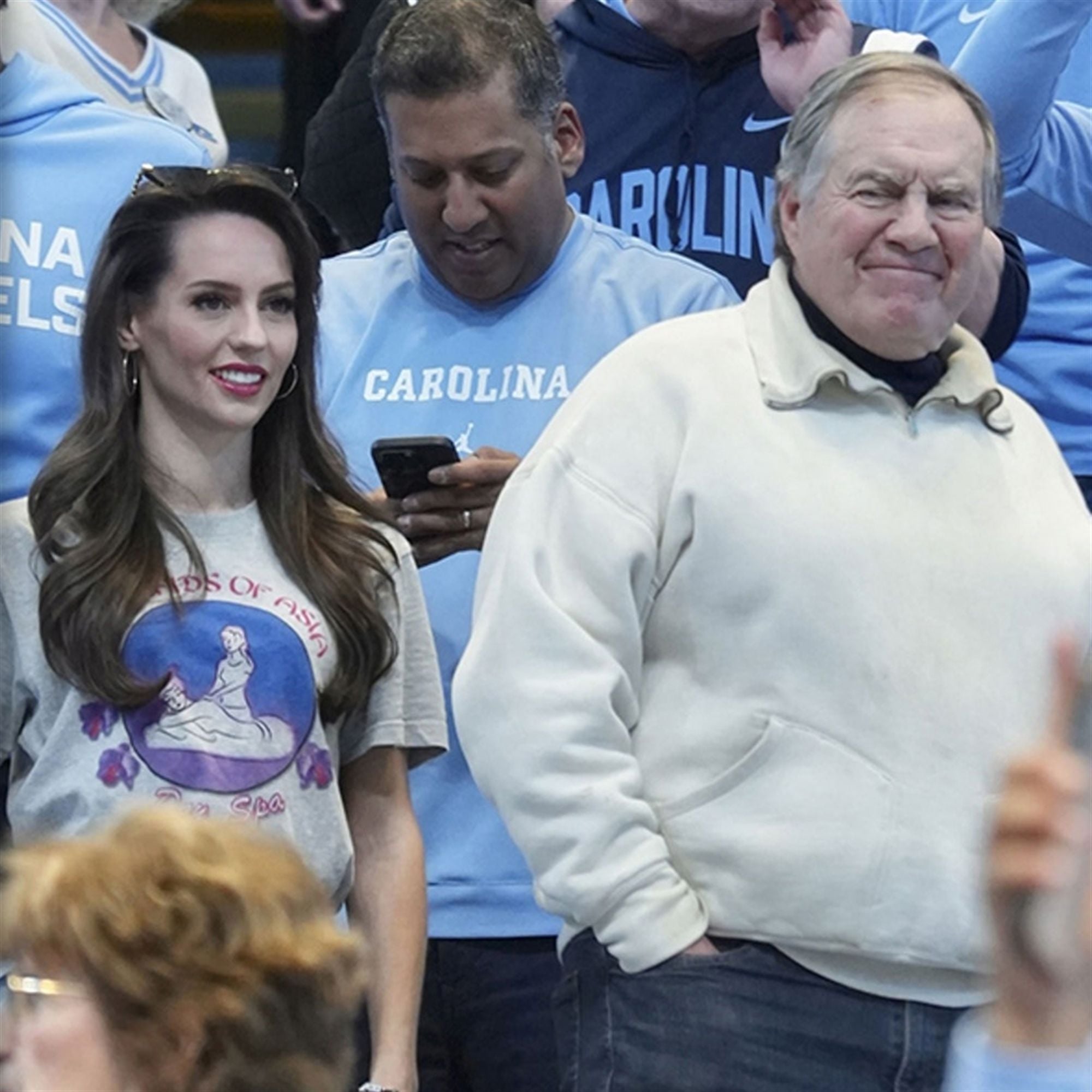 Dominate the conversation at your next tailgate or watch party with the most talked-about apparel piece of early 2026. This Belichick Girlfriend Orchids Of Asia Day Spa Jupiter Florida Shirt isn’t just a graphic tee; it is a piece of living sports history and a masterclass in silent, strategic trolling. As seen on Jordon Hudson at the Duke-UNC showdown, this design captures the ultimate “scorched earth” moment in the post-dynasty feud between a legendary coach and a billionaire owner.