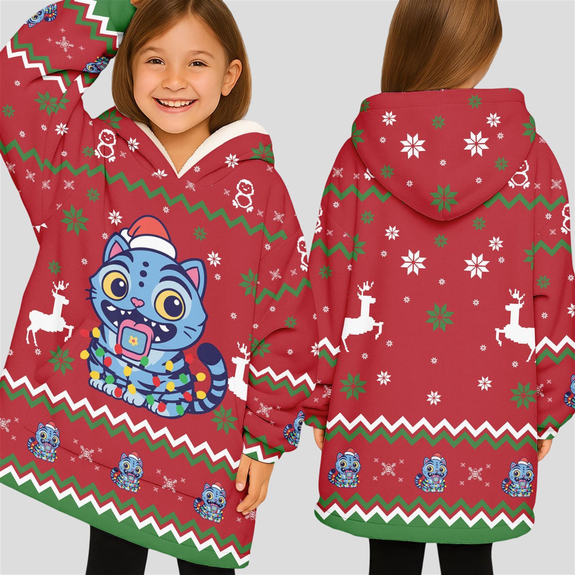 Blue Cat Ugly Christmas Hoodie Blanket | Embrace Ultimate Holiday