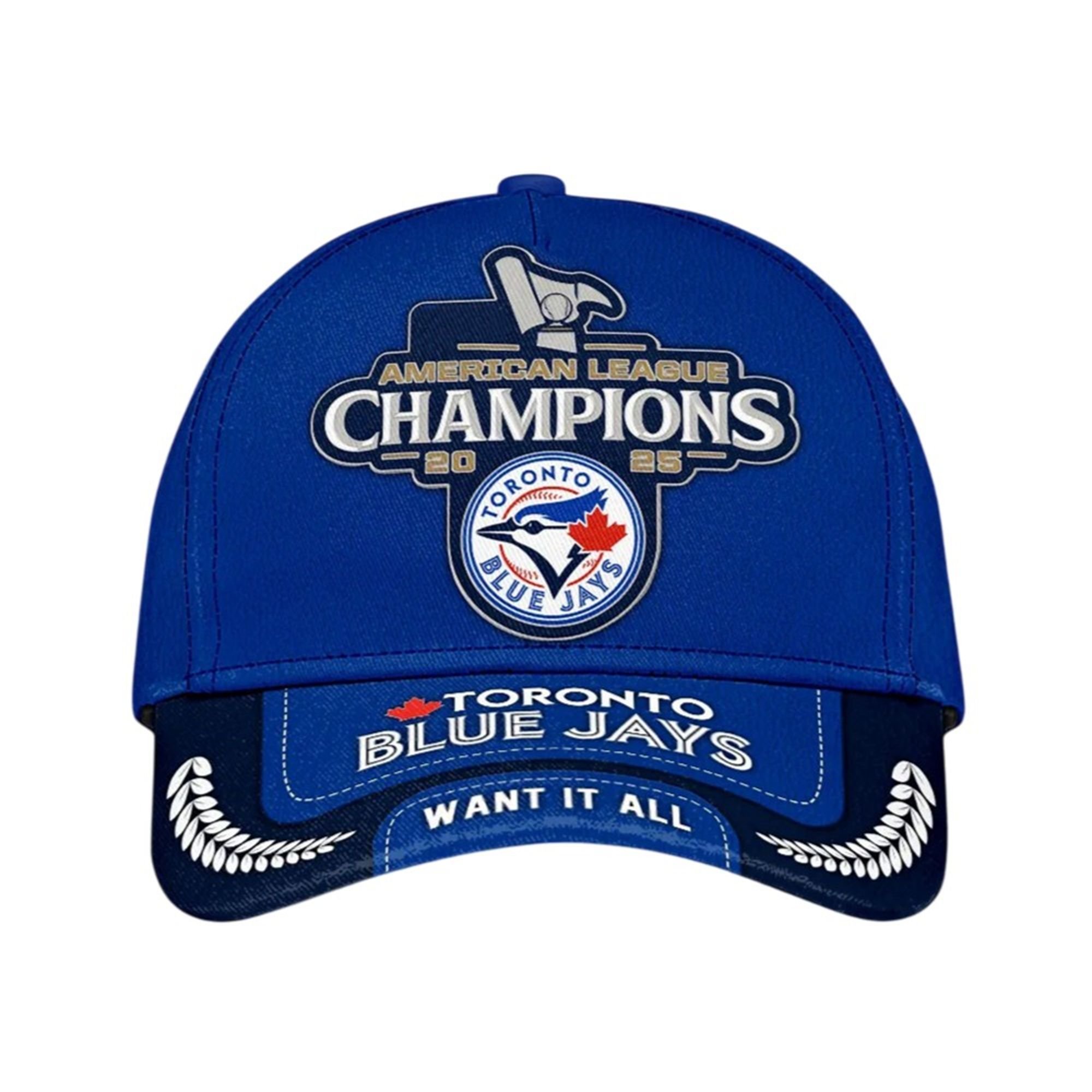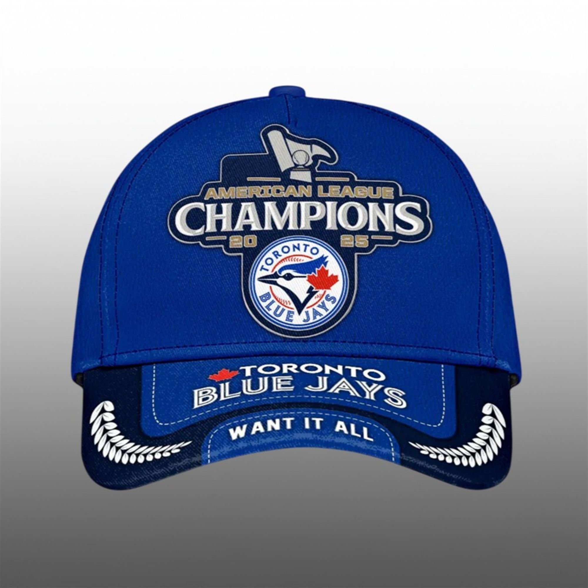 What truly sets this cap apart and captures the spirit of the 2025 Blue Jays is the bold statement on the brim: “WANT IT ALL.”