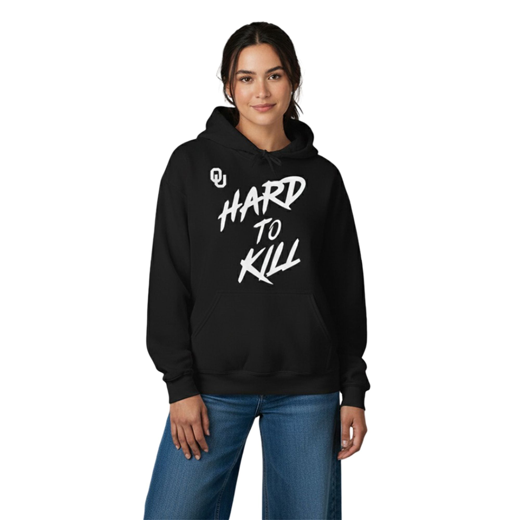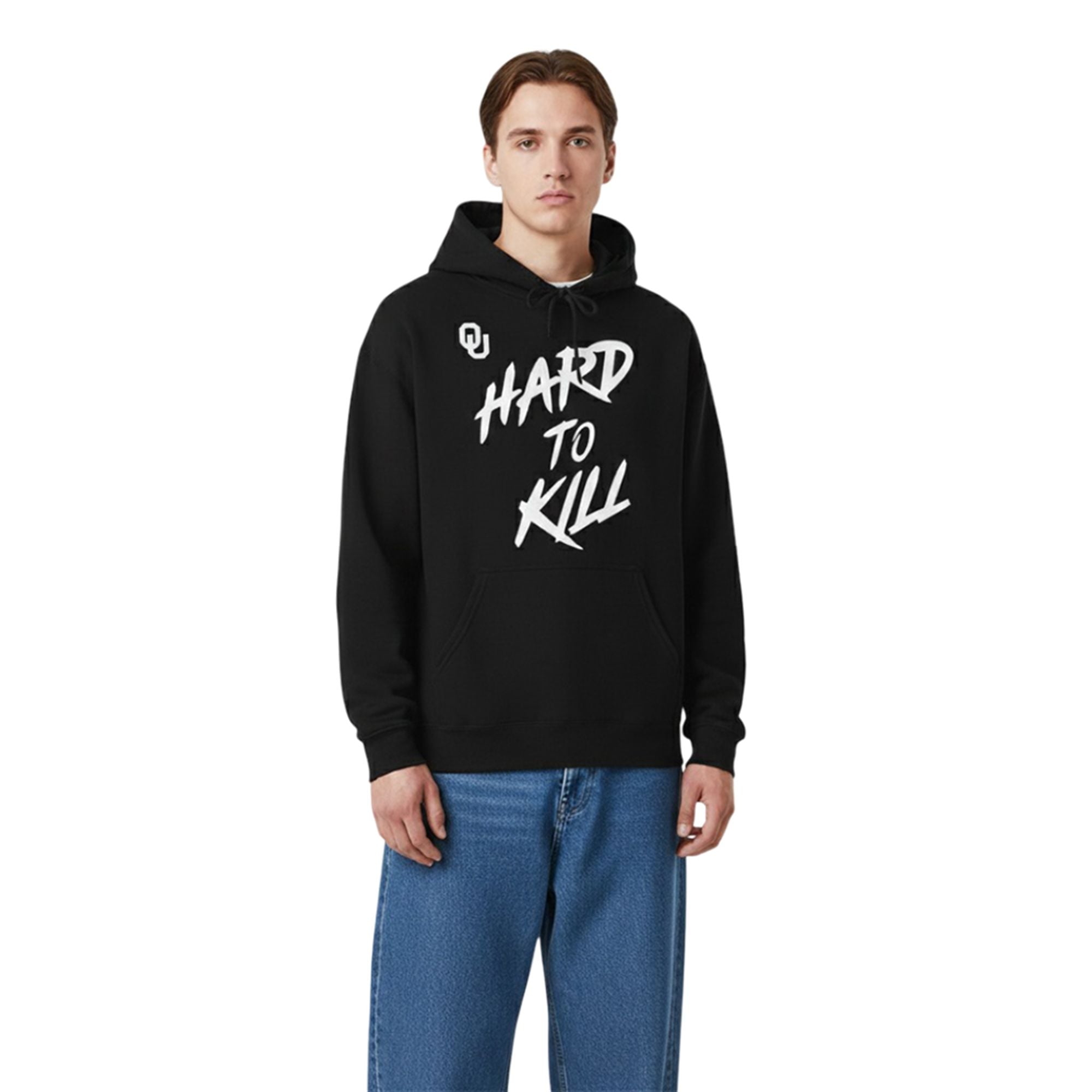 Featuring the bold “HARD TO KILL” slogan in a distressed, high-impact brush font alongside the classic Interlocking OU, this hoodie perfectly encapsulates the team’s “us against the world” mentality. Whether you are cheering from the stands at Gaylord Family Oklahoma Memorial Stadium or watching the playoff chase from home, this hoodie delivers premium comfort with an undeniable message of strength.