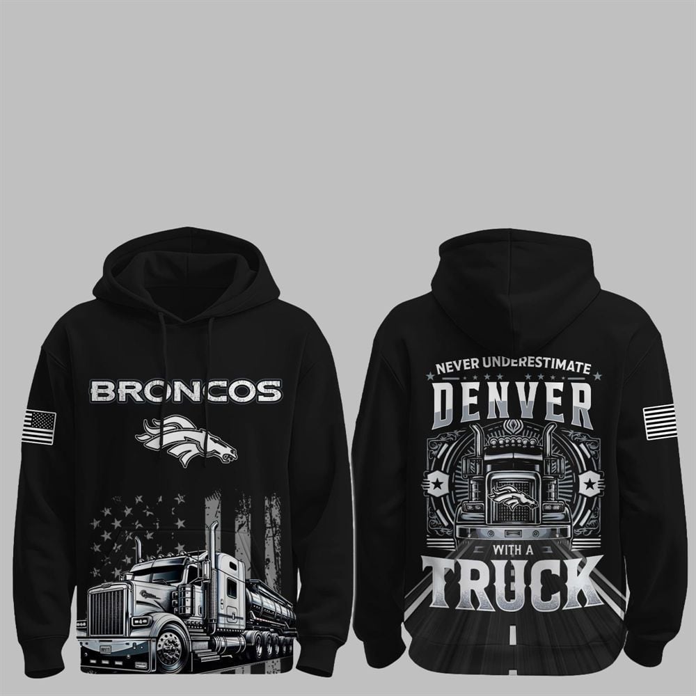 Don’t miss your chance to own a piece of the 2025 season that truly matters. The Denver Broncos Never Underestimate Denver With A TRUCK Hoodie is a powerful symbol of strength, loyalty, and American spirit. Combining superior comfort, rugged style, and an exclusive commemorative design, it’s the ultimate way to show your support on game day and every day. Gear up, show your pride, and order this limited-edition hoodie today!