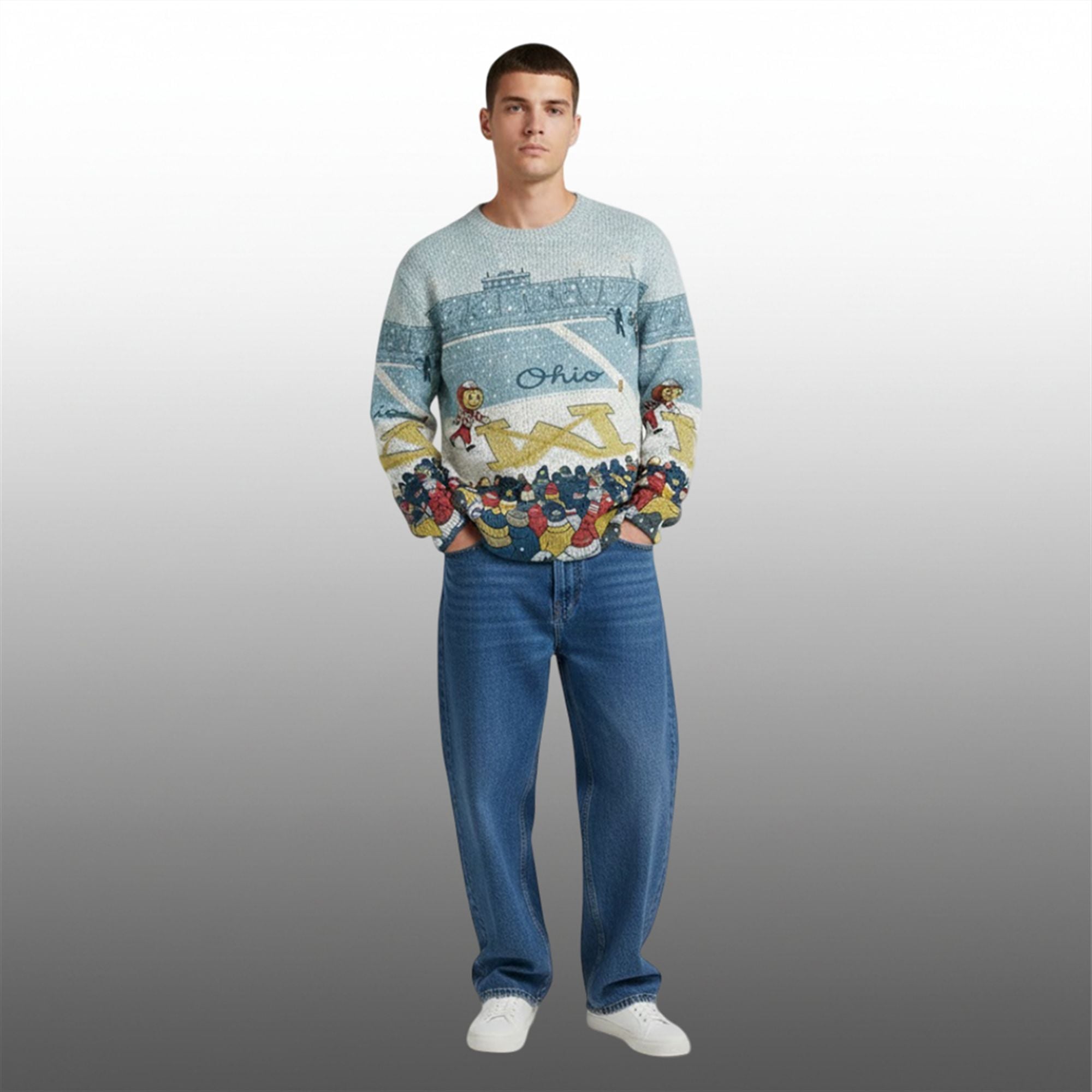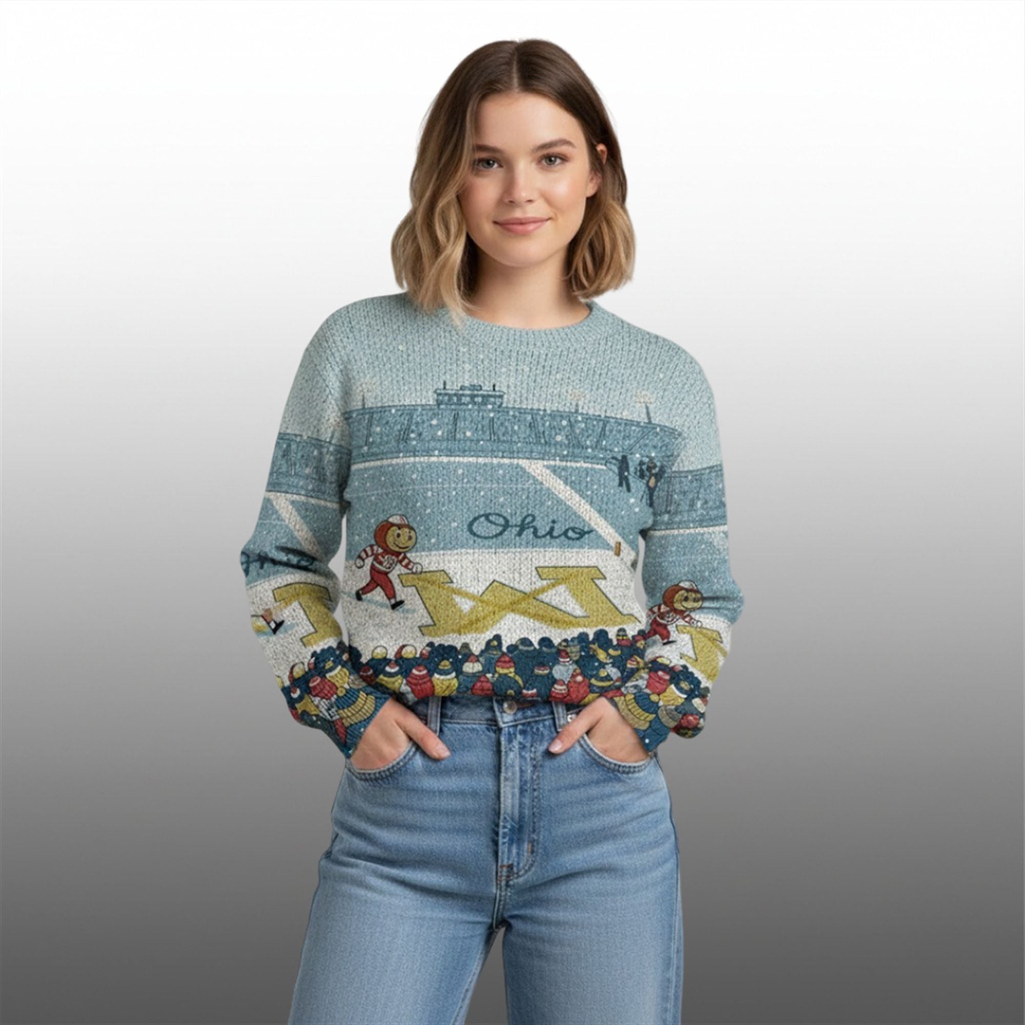 Bring the electric atmosphere of “The Horseshoe” straight to your holiday wardrobe with the ultimate piece of fan gear. The Brutus Buckeye Rivalry Ugly Christmas Sweater captures the legendary intensity of the Ohio State vs. Michigan rivalry, set against a nostalgic, snowy backdrop.