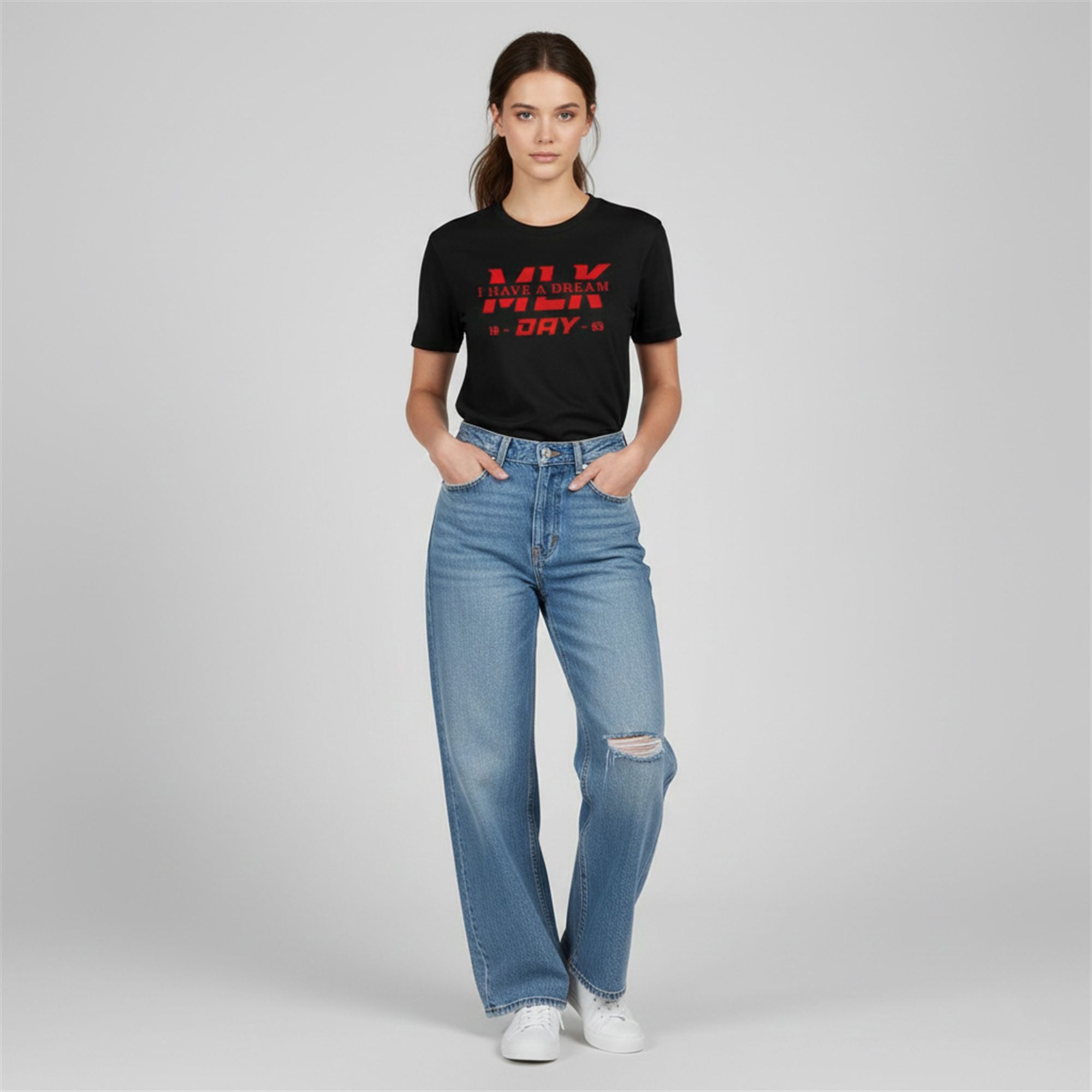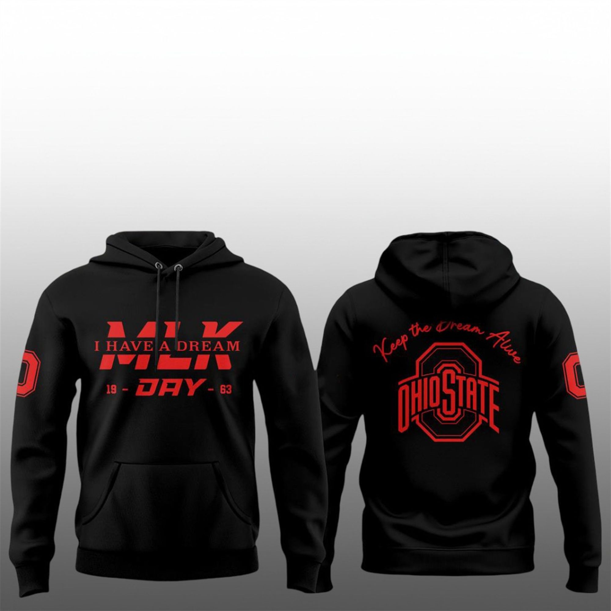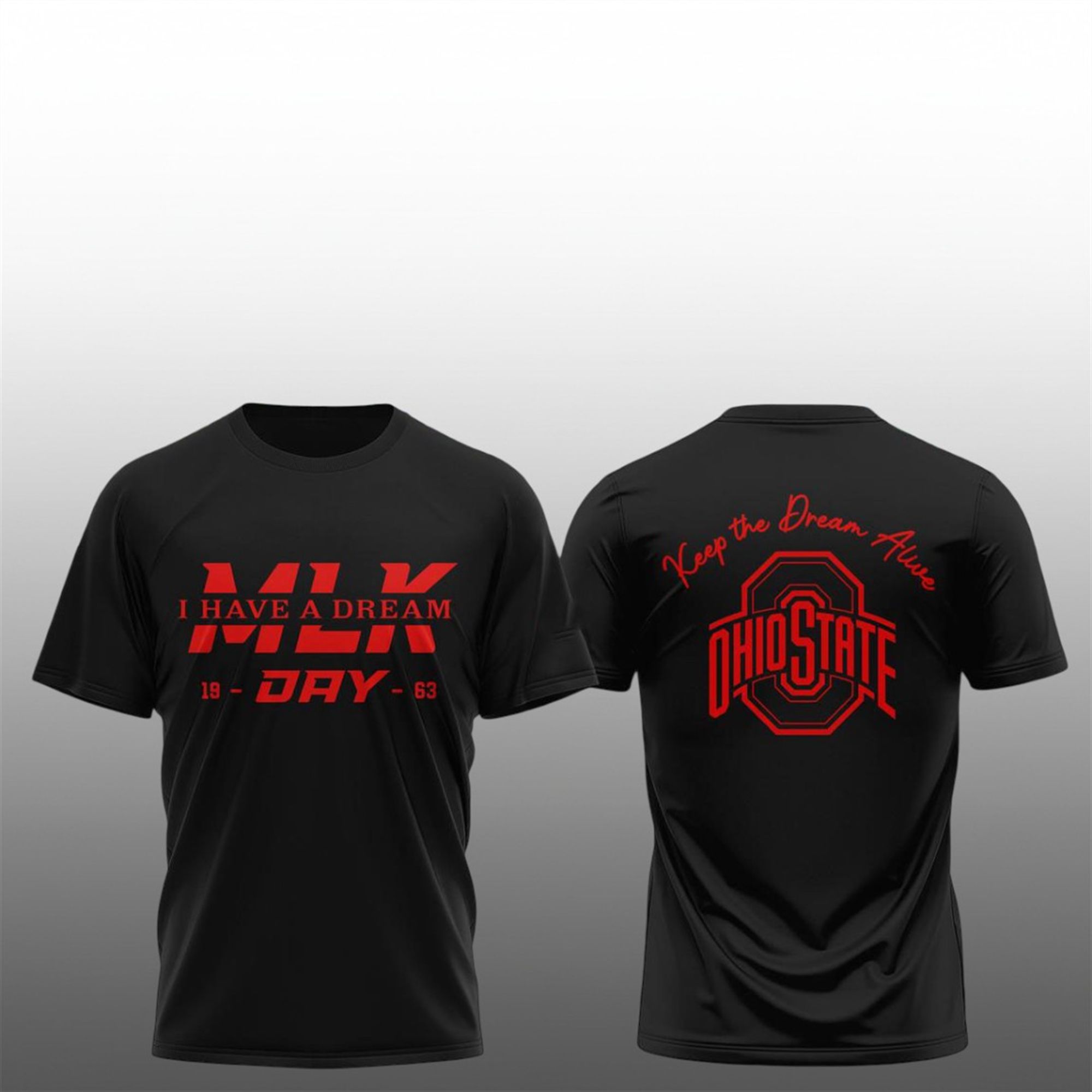 The Buckeyes x MLK Day Shirt is a striking fusion of sports fandom and historical reverence. The front of the shirt commands attention with a modern, aggressive typeface featuring “MLK” in bold scarlet, overlaid with the timeless declaration, “I HAVE A DREAM.” Flanked by the commemorative dates “19 – 63,” it pays homage to the year Dr. King delivered his most famous speech, changing the course of American history.