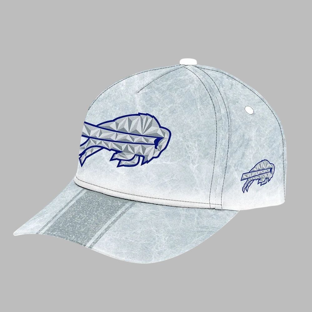 This hat immediately stands out with its unique “cold” aesthetic. The entire cap is crafted from a premium fabric with a frosted, stone-washed finish, giving it a cool, textured look that feels both modern and rugged. The main attraction is the reimagined charging buffalo logo on the front panel. Rendered in a stunning geometric, multi-faceted pattern, the logo shimmers with shades of grey and silver, outlined in sharp royal blue. This crystalline effect creates a dynamic, 3D-like appearance that captures the light and commands attention. A secondary, matching logo is on the side, ensuring your team spirit is visible from every angle, while two bold racing stripes adorn the brim, completing the cohesive and athletic look.
