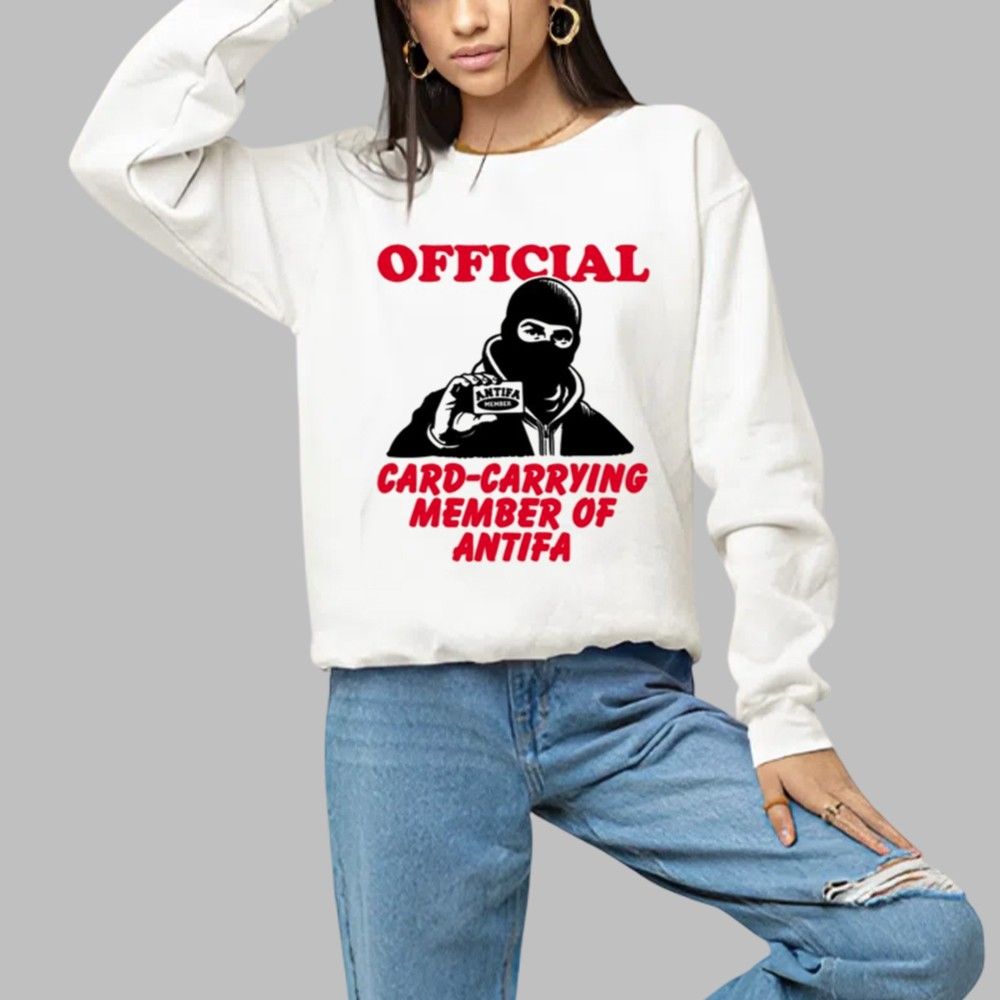 Don’t just believe in a better, more equitable world—wear your conviction for everyone to see. The “Official Card-Carrying Member of Antifa” shirt is more than apparel; it’s a symbol of resistance, a tool for satire, and a declaration of your commitment to fighting against fascism. Stand up, stand out, and let your clothing speak volumes. Add this essential piece of statement wear to your collection today and join a visual movement for justice and equality.