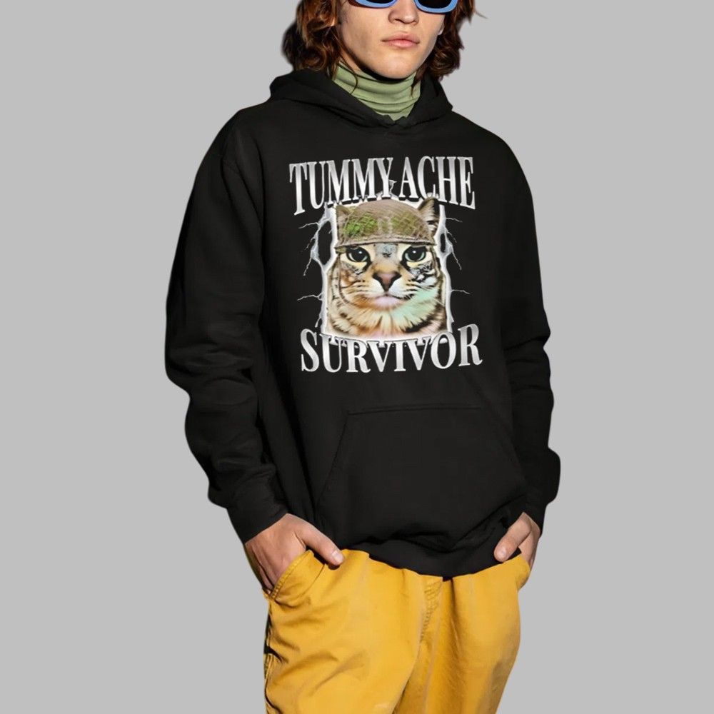 Don’t just survive—thrive in style. Add the Tummy Ache Survivor Cat Shirt to your cart today and wear your victory with pride!