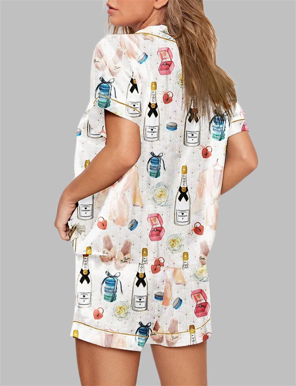 Searching for women’s loungewear that’s both incredibly comfortable and undeniably stylish? Look no further than the Champagne Glamorous Pajama Set. Featuring a whimsical pattern of celebratory icons on smooth, lightweight fabric, this button-down short set promises blissful sleep and elegant lounging. Treat yourself or someone special to the ultimate relaxation experience.
