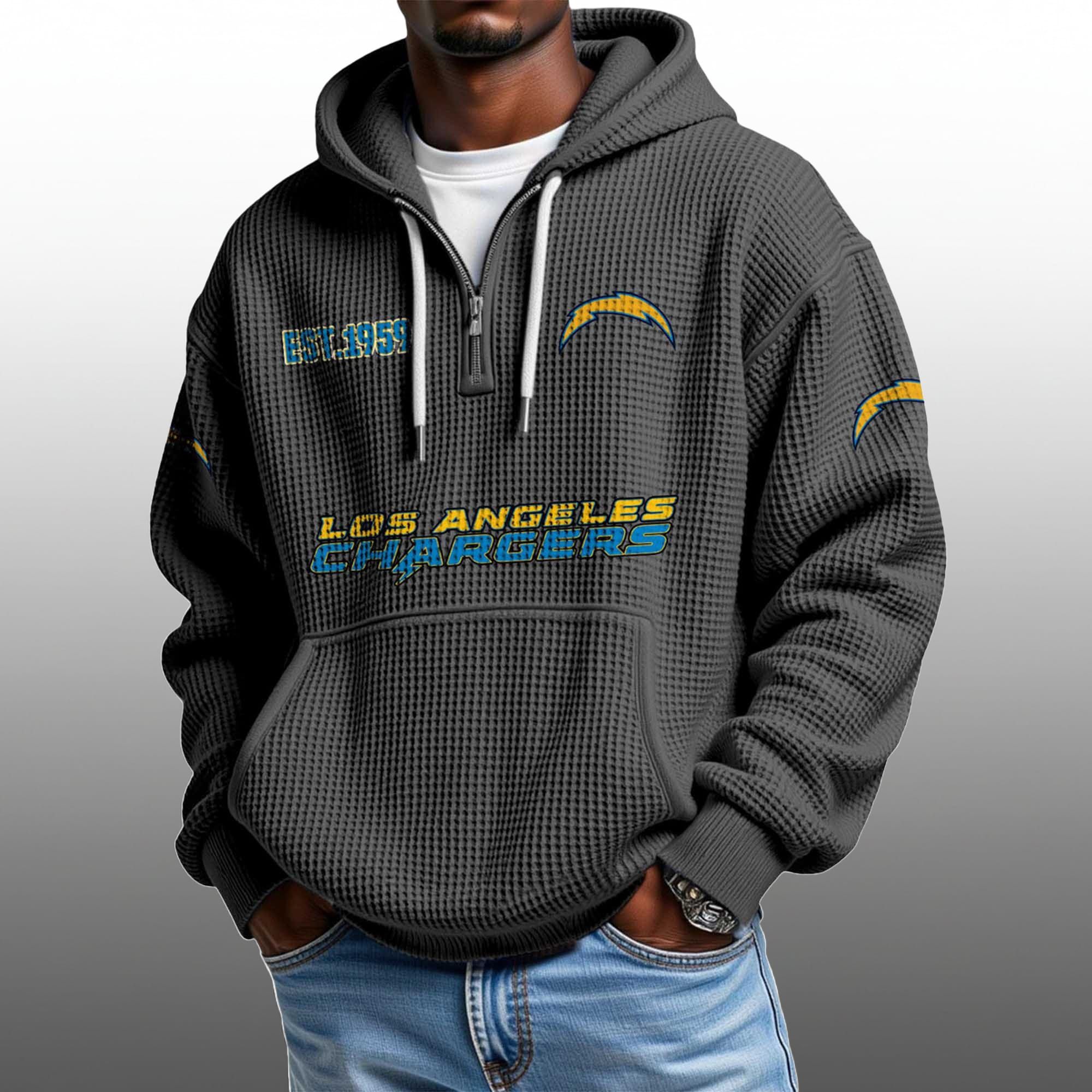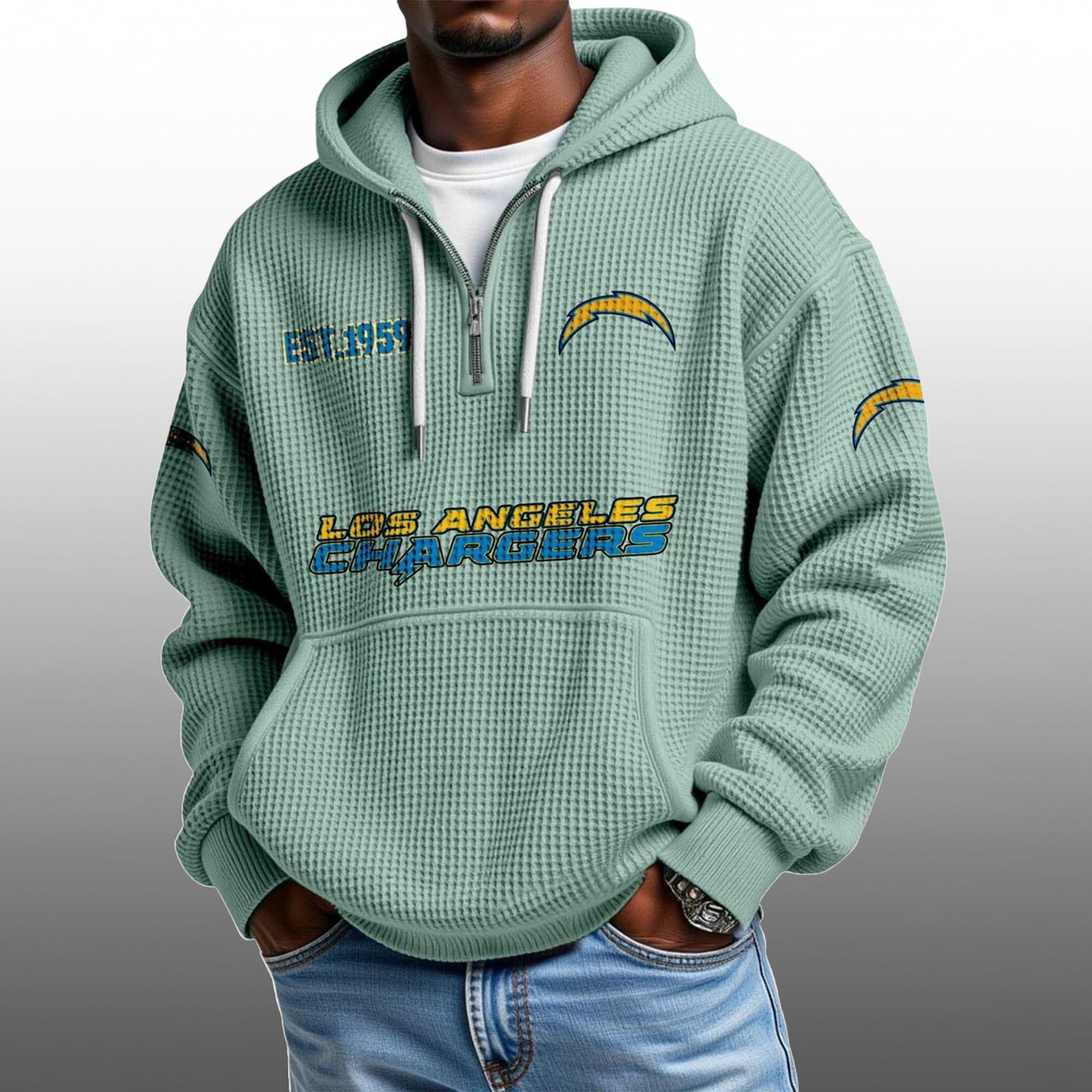 Elevate your game day wardrobe with the Los Angeles Chargers EST 1959 Half Quarter Zip Waffle Hoodie. Designed for the dedicated fan who refuses to sacrifice style for warmth, this pullover features a textured waffle knit construction that delivers superior thermal insulation without the bulk.