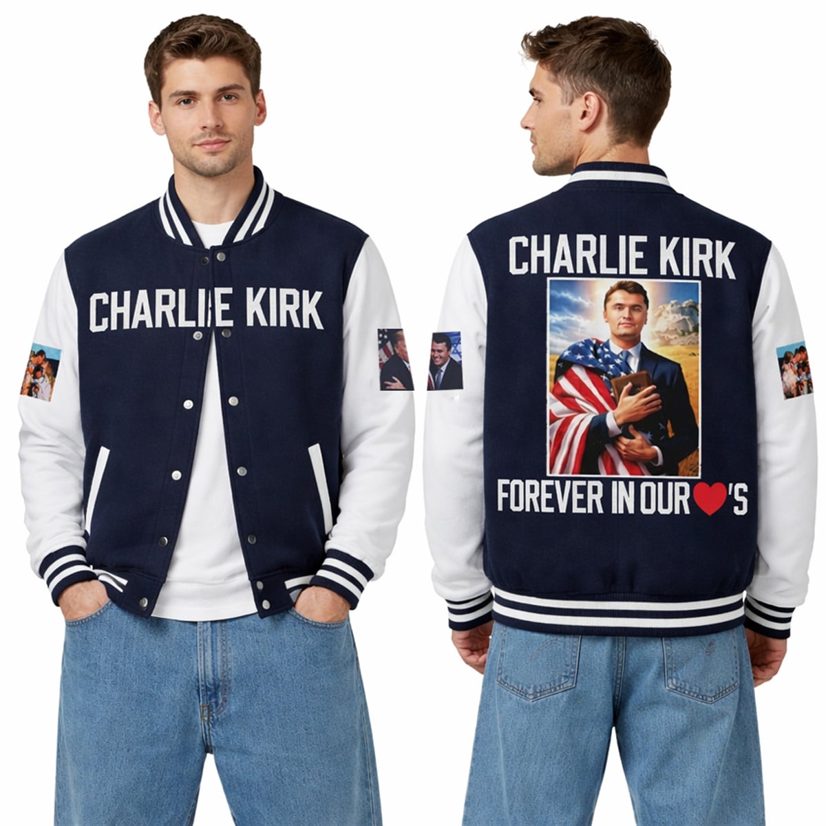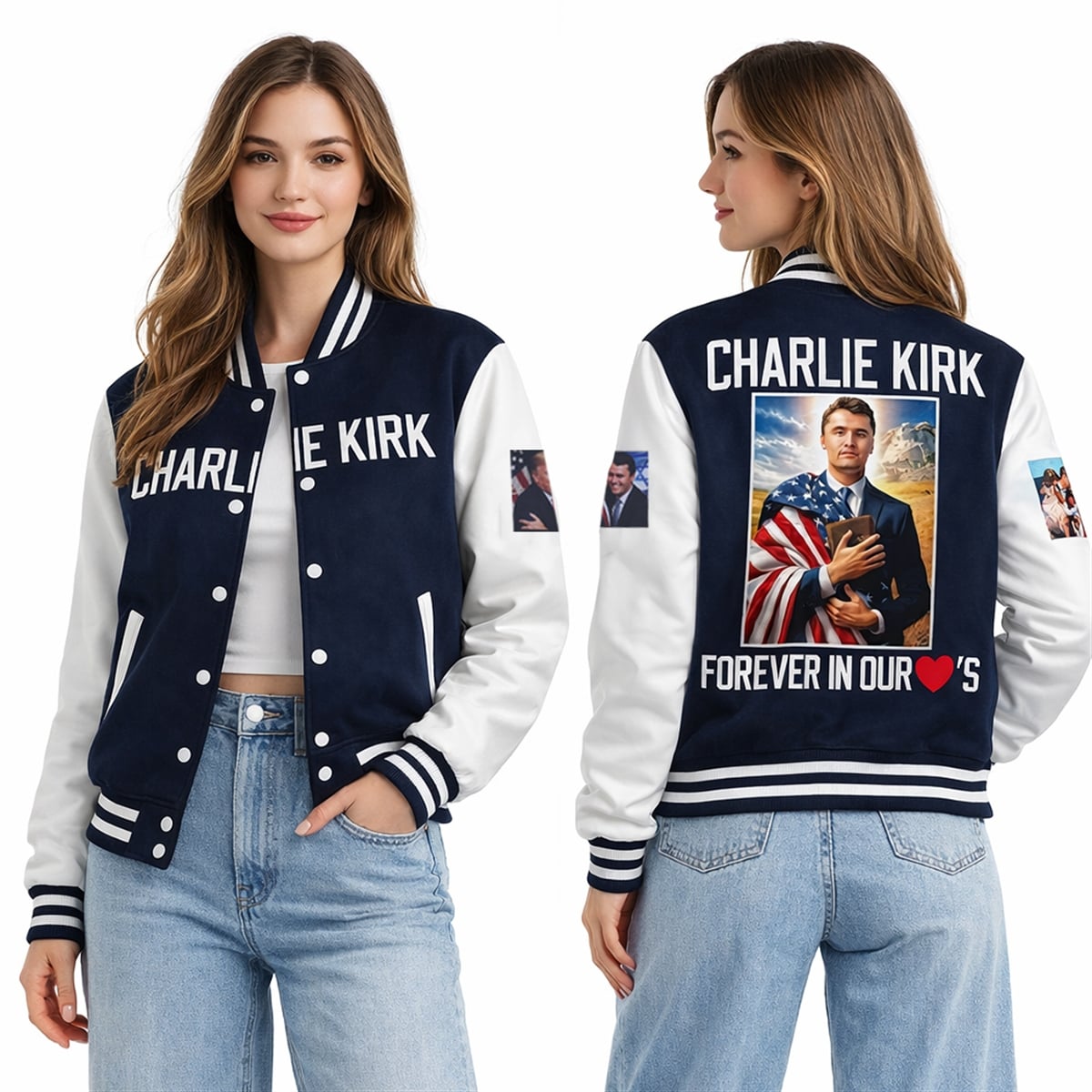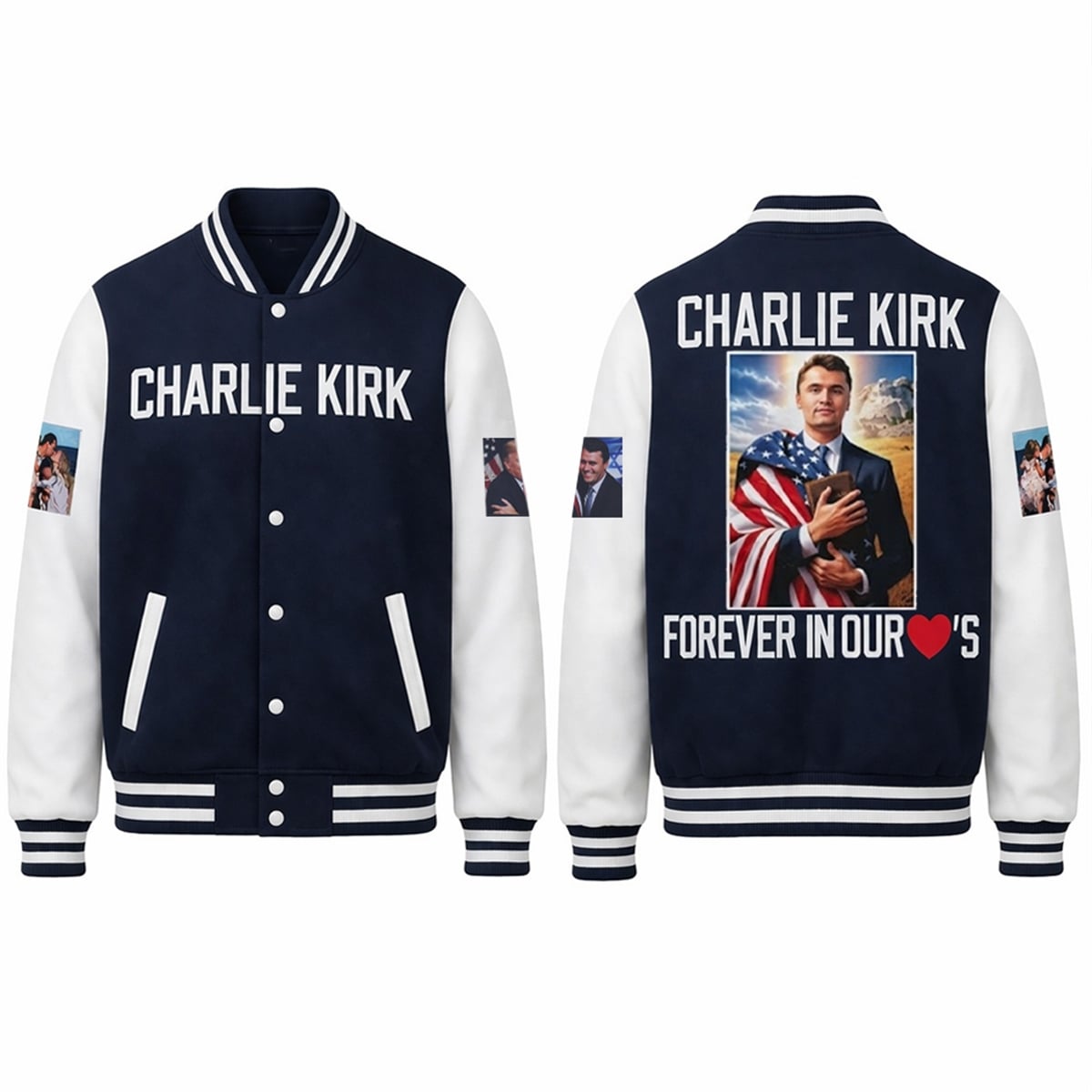 2026 Charlie Kirk Forever in Our Hearts Baseball Jacket – The Conservative Style Icon