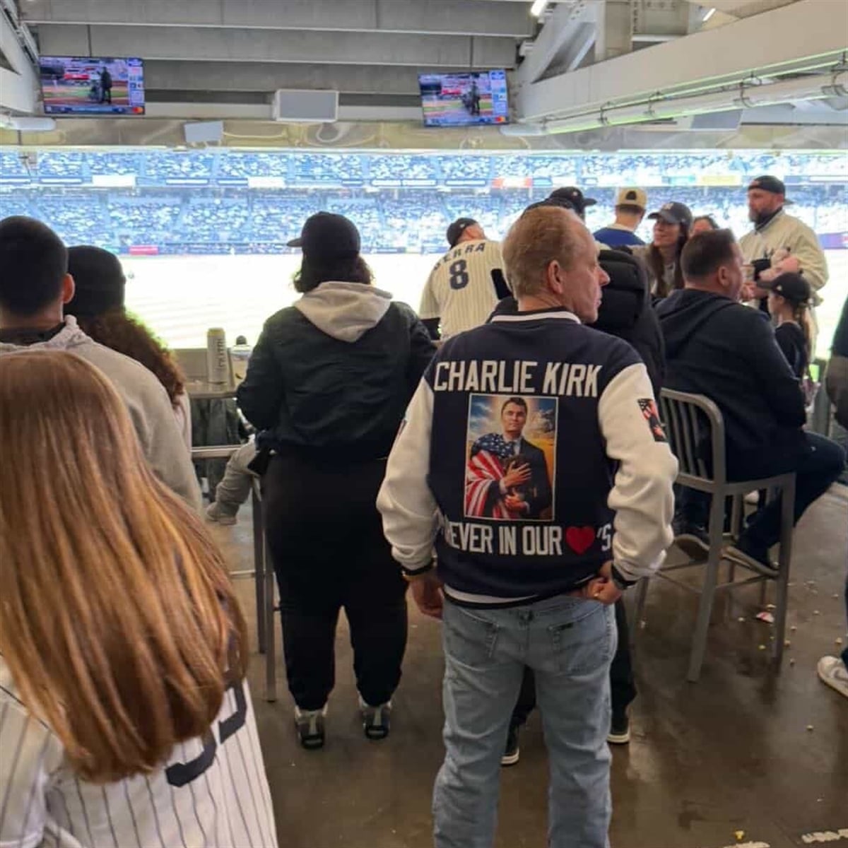 Spotted at a highly televised major league baseball game in New York, this Charlie Kirk FOREVER IN OUR ❤️’S Jacket immediately caught the attention of both sports fans and online commentators. Its unique blend of traditional varsity aesthetics with a hyper-specific, meme-inspired political tribute sparked instant, heated debate across social media platforms. Political influencers quickly amplified the stadium photos, turning the garment into an overnight symbol of modern conservative pop culture. The sheer audacity of wearing such a prominent, uncompromising political statement in a purely entertainment setting cemented its widespread viral status.